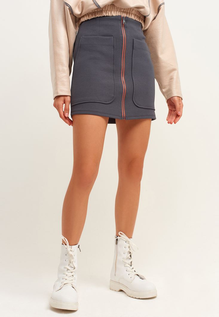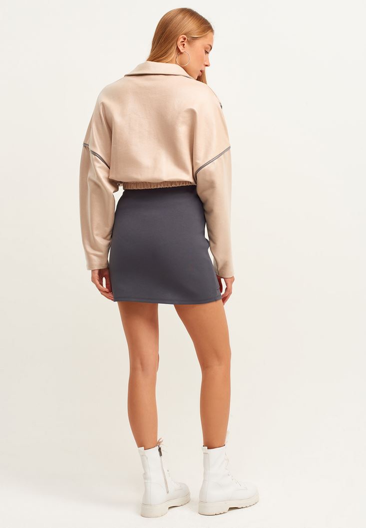 Antrasit Fermuarlı Sweat Dokulu Mini Etek