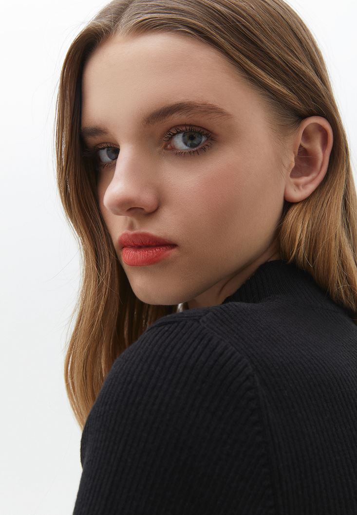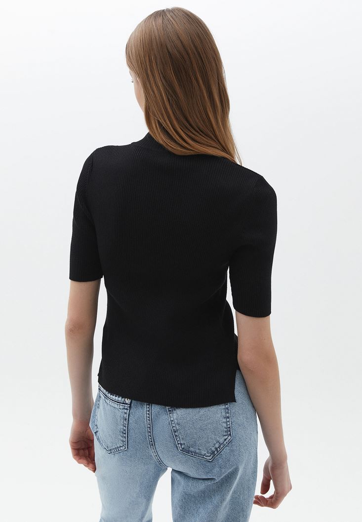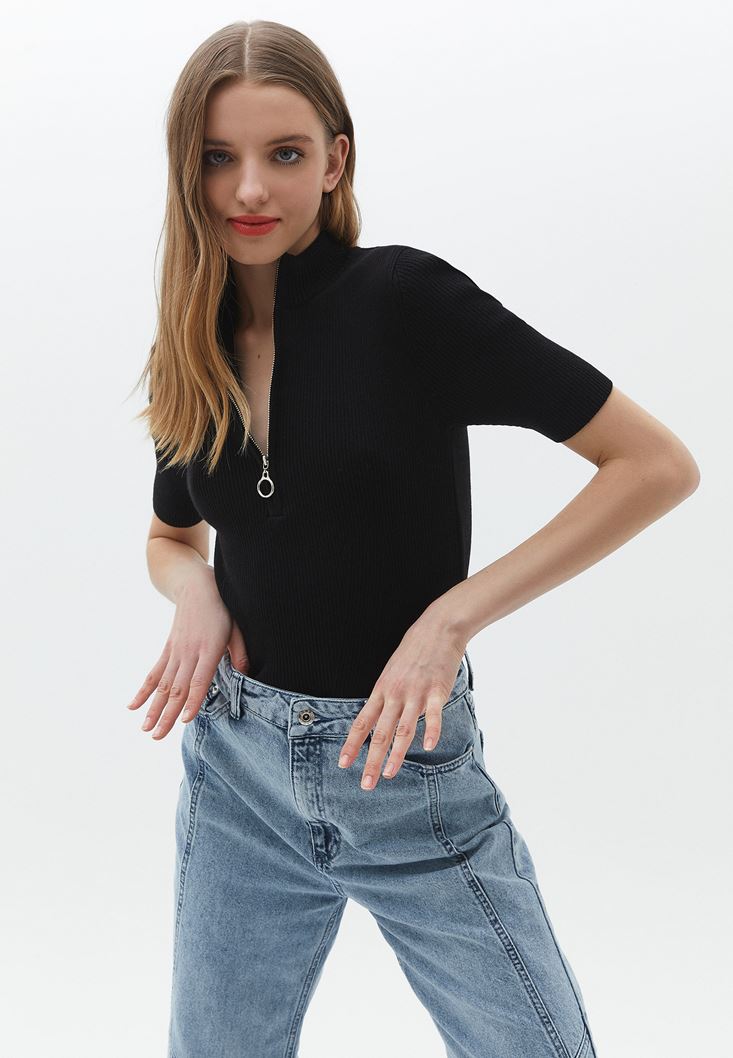 Siyah Fermuarlı Triko Kazak