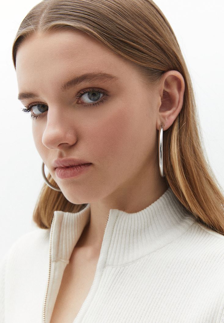 Pamuk karışımlı triko, jakarlı örgü, fermuarlı yüksek yaka, kısa kollu, bedeni saran esnek fit, standart boy.