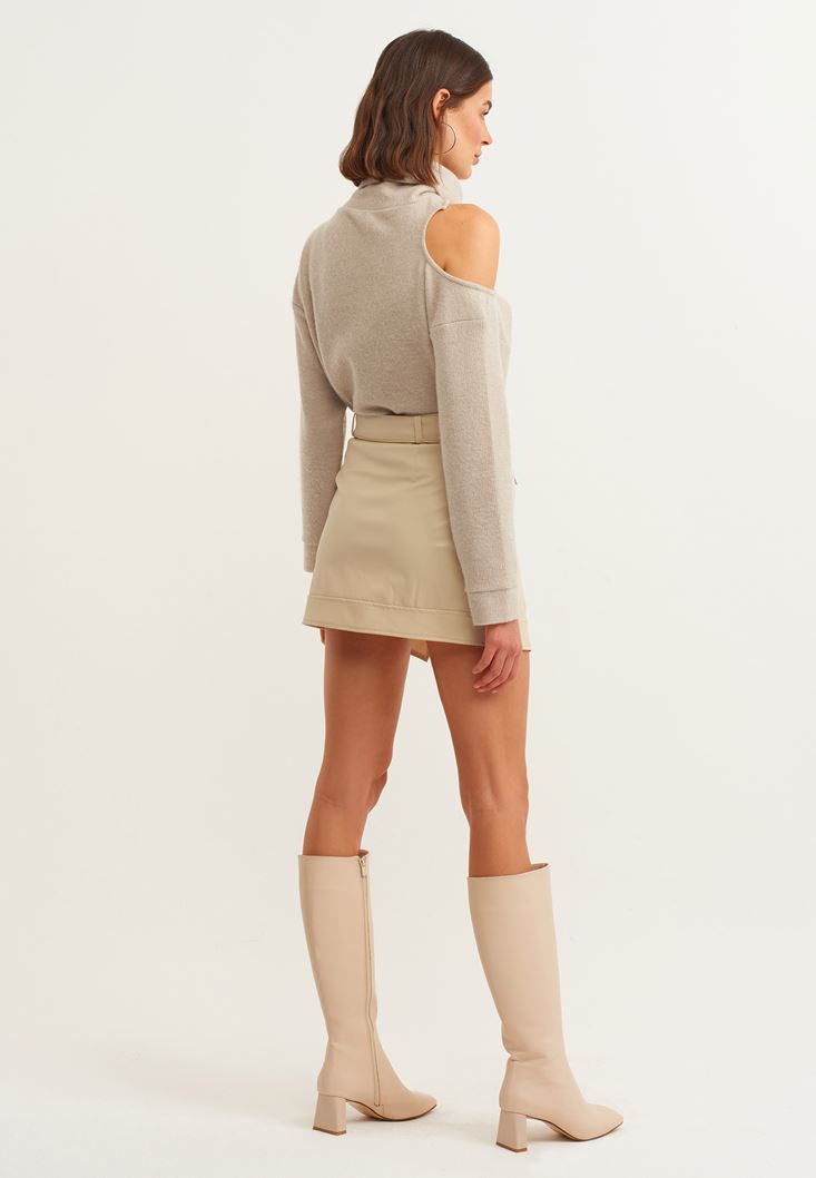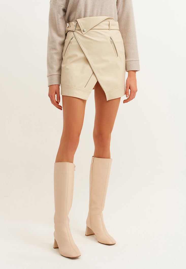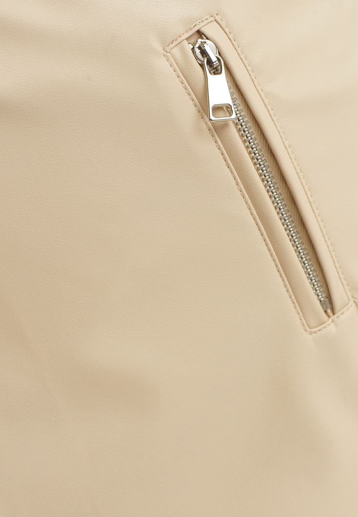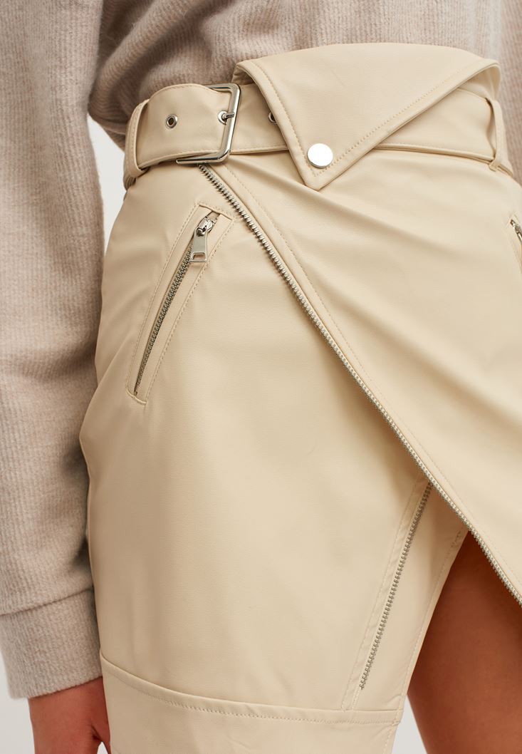 • Bayan Bej Fermuarlı Vegan Deri Mini Etek