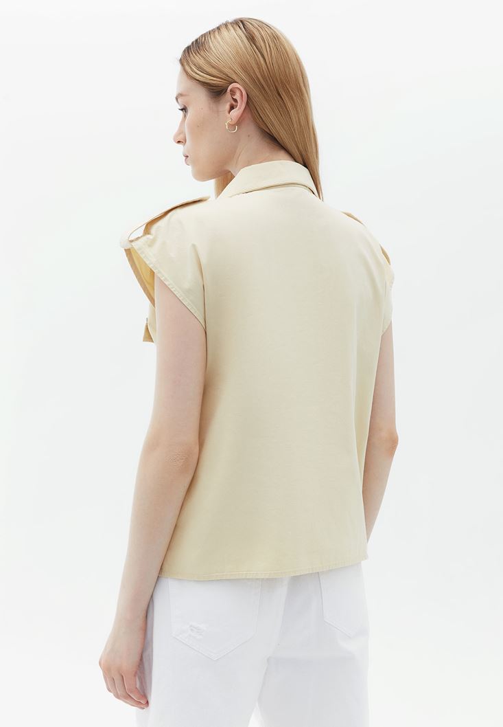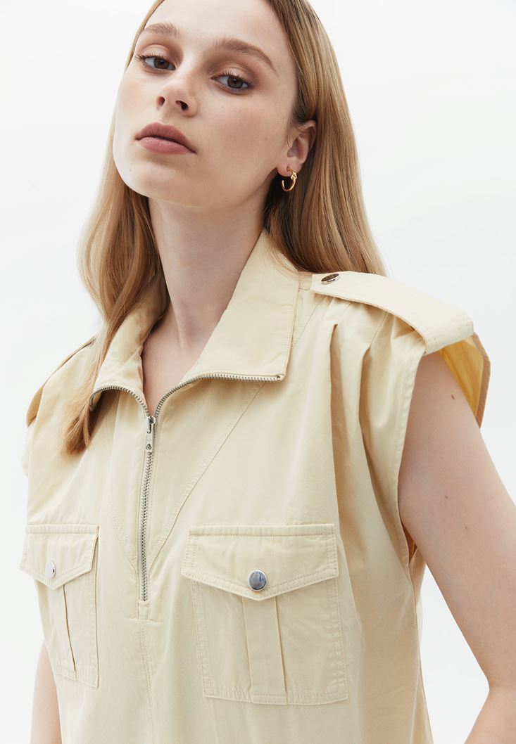 %100 pamuklu doğal içerik, yüksek yaka, bedenden uzak loose fit, omuzları apoletli, yakası fermuarlı, üst kısmı kapaklı cep detaylı.