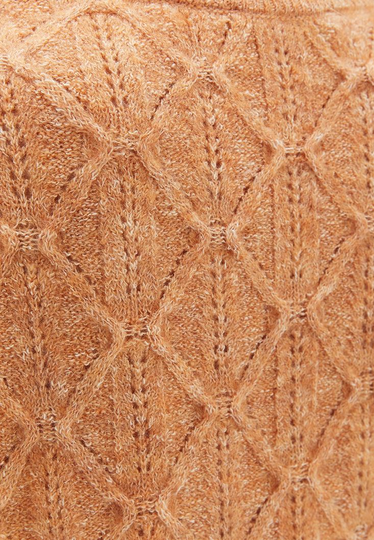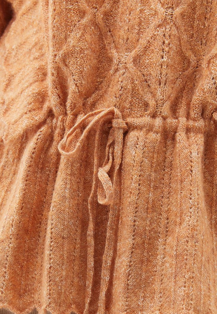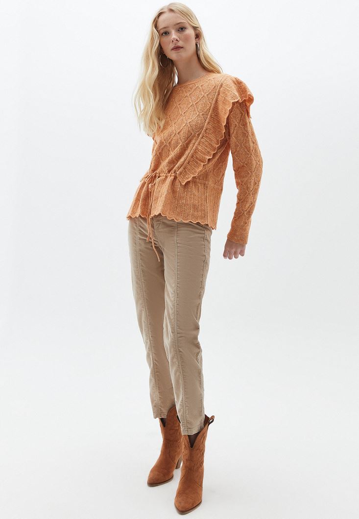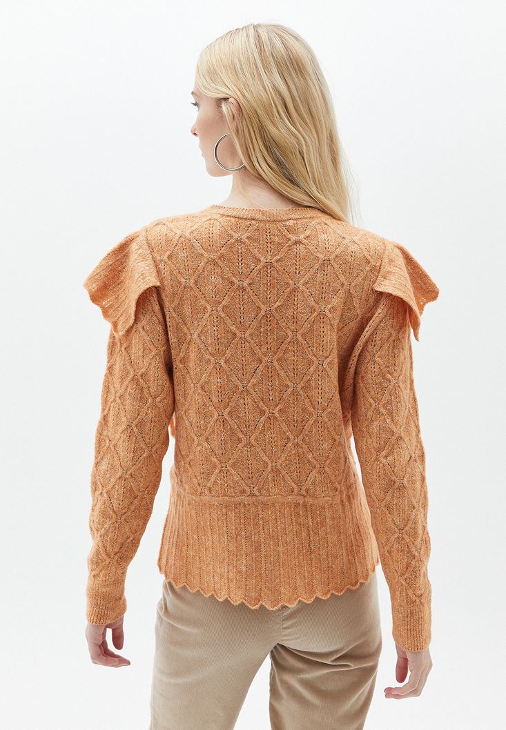 Turuncu Fırfır Detaylı Ajurlu Triko Kazak