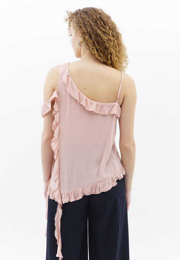 Pembe Fırfır Detaylı Asimetrik Bluz