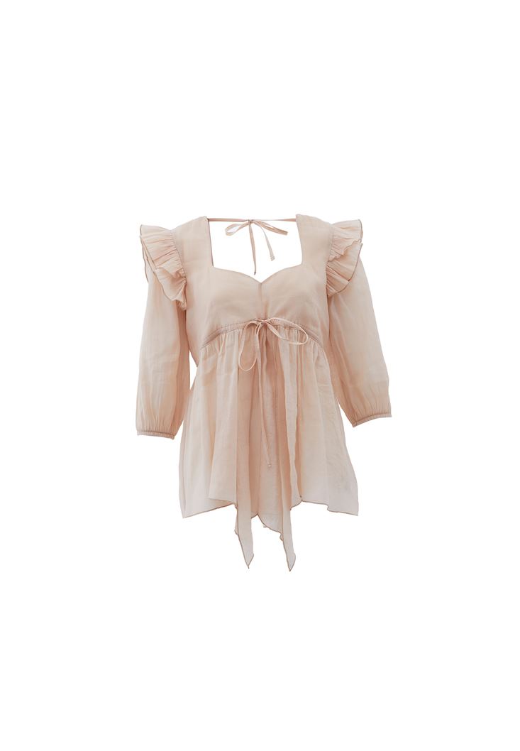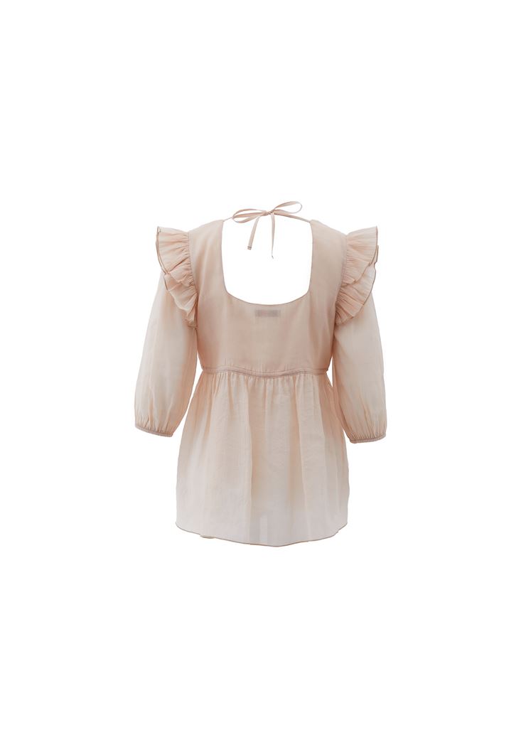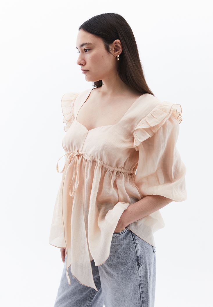 Bej Fırfır Detaylı Bluz ( TENCEL™ )