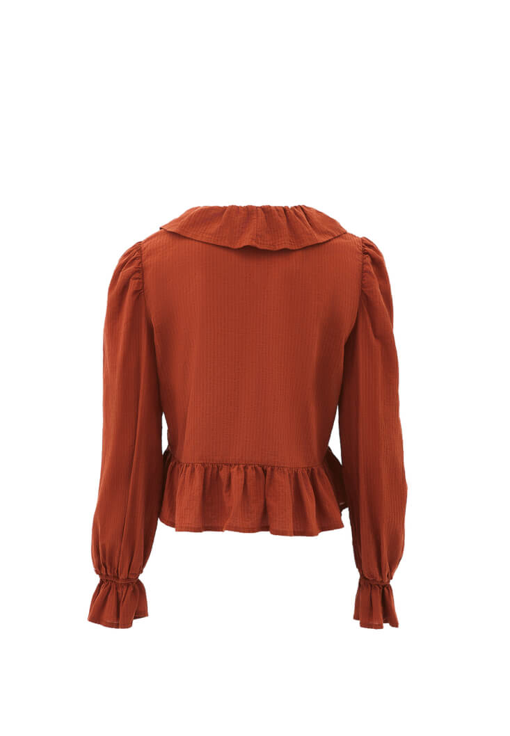 Kiremit Fırfır Detaylı Bluz
