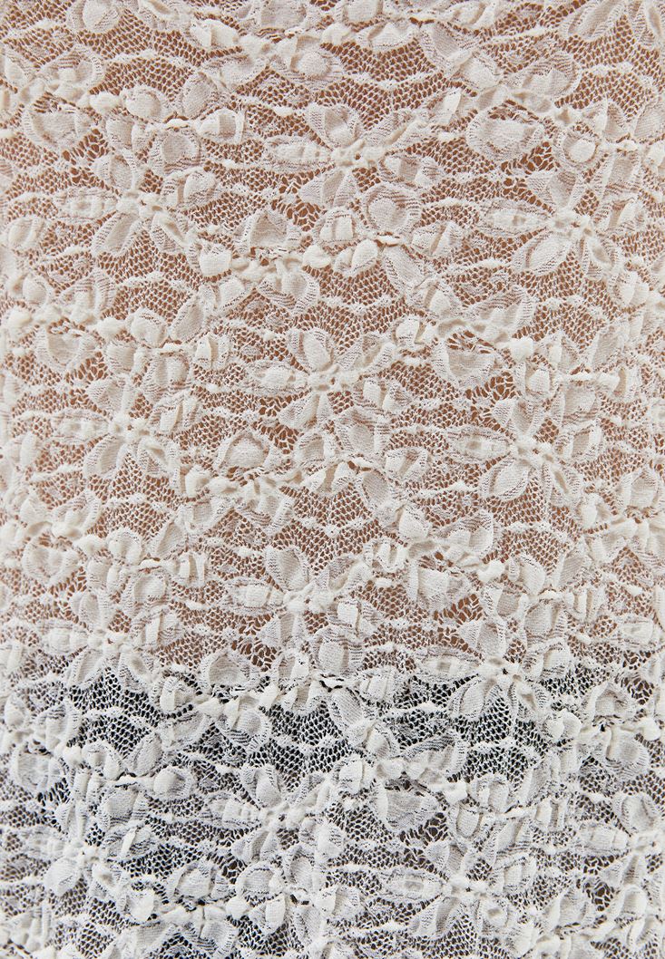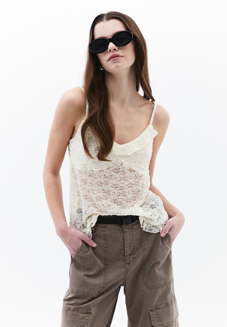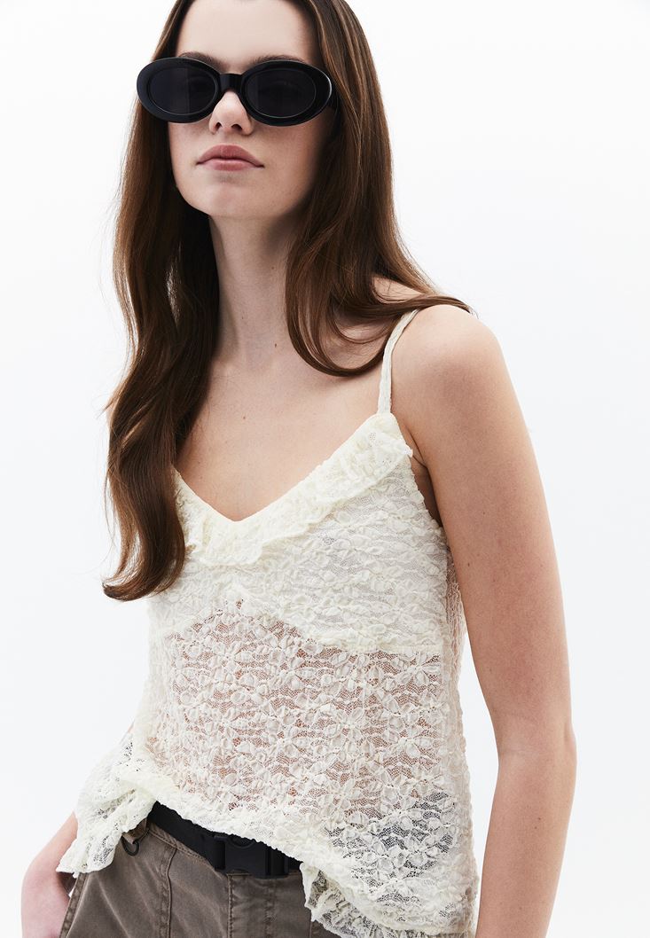 Krem Fırfır Detaylı Dantel Bluz