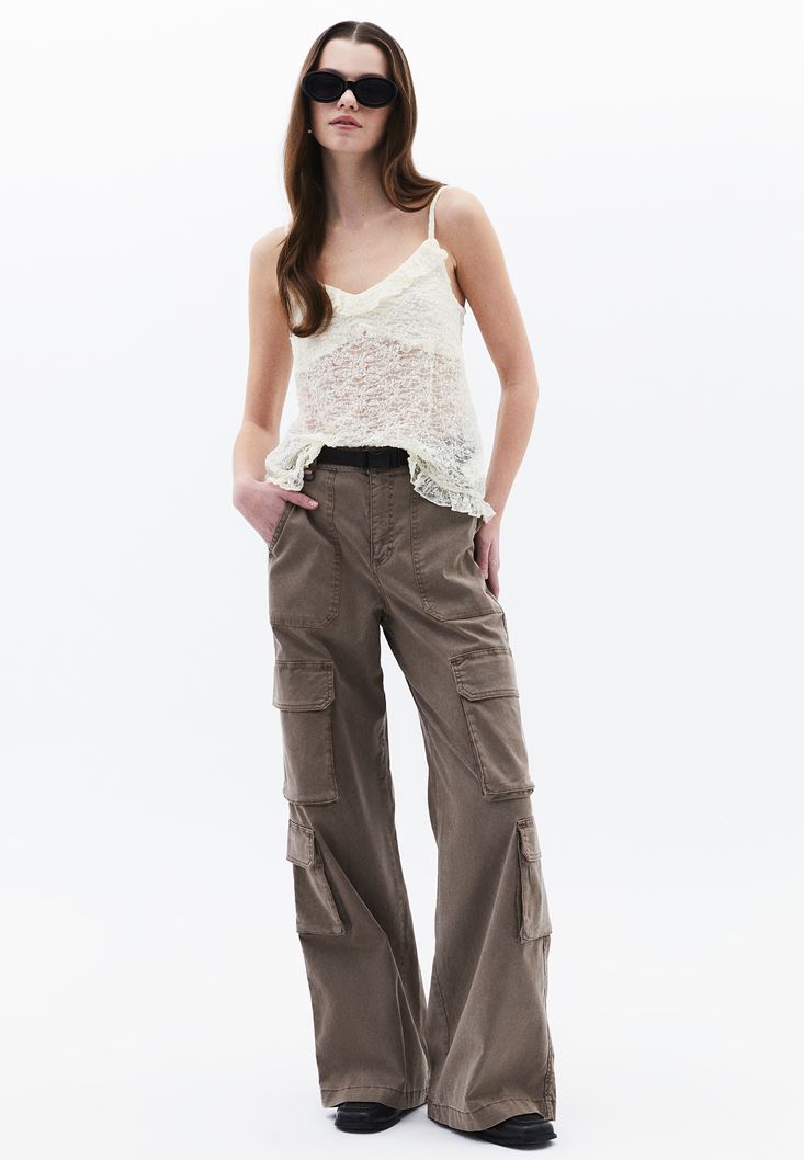Dantelli bluz, modleli fırfır detayları ve dantel işlemeleriyle romantik bir hava yaratıyor. V yaka tasarımı ve kolsuz formu, feminen bir duruş sergilerken yumuşak kumaşıyla gün boyu konfor sağlar. Dantel bluz modelini; jean pantolonlar veya eteklerle kombinleyerek hem günlük hem de özel davetlerde stilinizi ön plana çıkarabilirsiniz.​