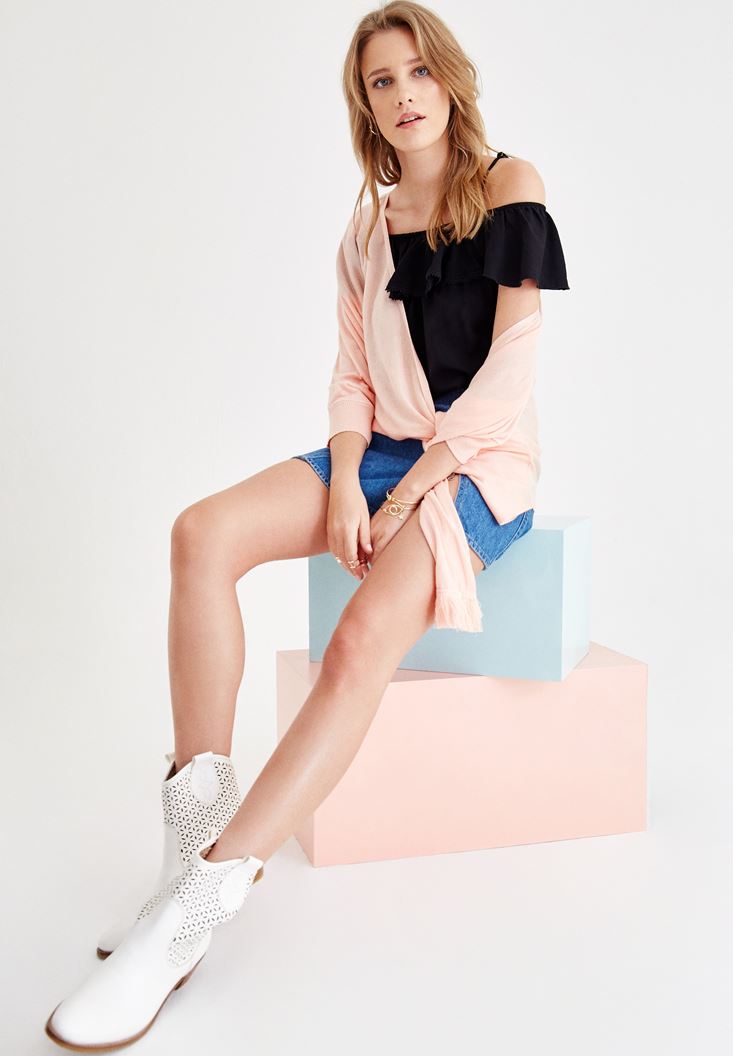 Firfir Detayli Düsük Omuzlu Bluz modeli zarif tasarimi, yumusak dokusu ve bastan çikarici sadeligi ile her zaman kullanmaktan keyif alacaginiz özel bir tasarima sahip. Düsük omuz detayina eslik eden ince askilar hareket özgürlügünüzü etkileyici bir sekilde ön plana çikariyor. Sahip oldugu viskon lifinin konforunu basarili bir sekilde yansitan bluz modeli gün boyu kullanimda nefes alan yapisi ve nem transfer etme özelligi ile size özgürlügü ve konforu bir arada sunuyor. Farkli tarzlara sahip kombinlerde rahatlikla kullanabileceginiz bluz modelleri arasinda yer alan Firfir Detayli Düsük Omuzlu Bluz modeli, OXXO'nun dokulardan aldigi ilhami sadelikle bulusturarak elde ettigi sikligi yansitan bluz modelleri arasinda yer aliyor.