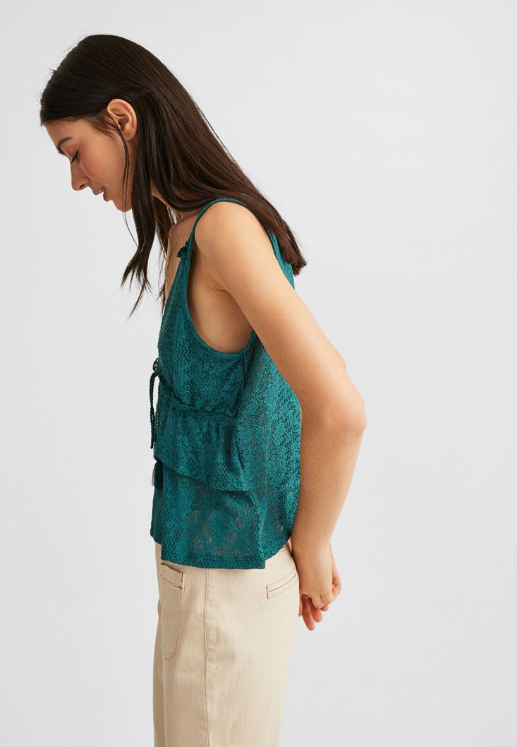 • Bayan Yeşil Fırfır Detaylı Jakarlı Bluz