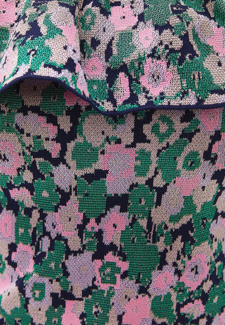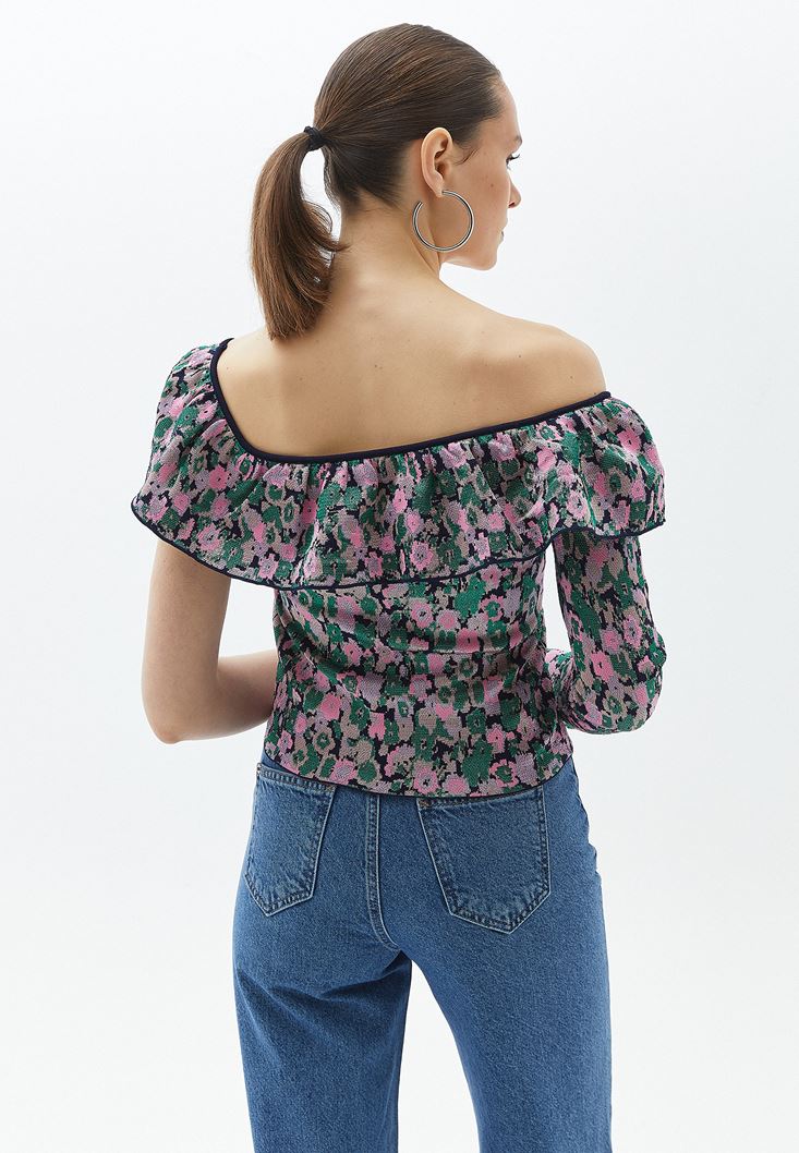 Çok Renkli Fırfır Detaylı Jakarlı Triko