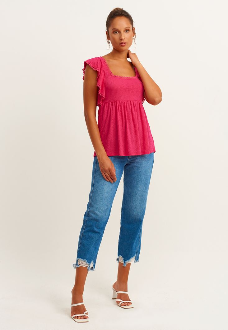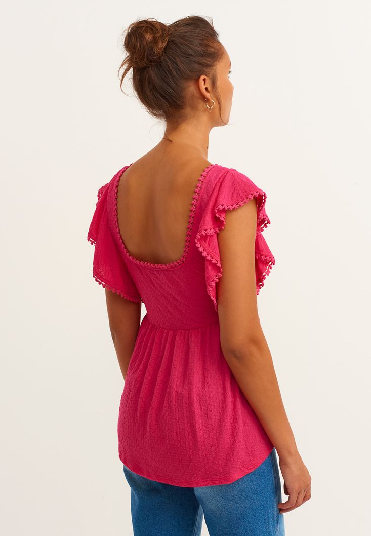 Pembe Fırfır Detaylı Kare Yaka Bluz