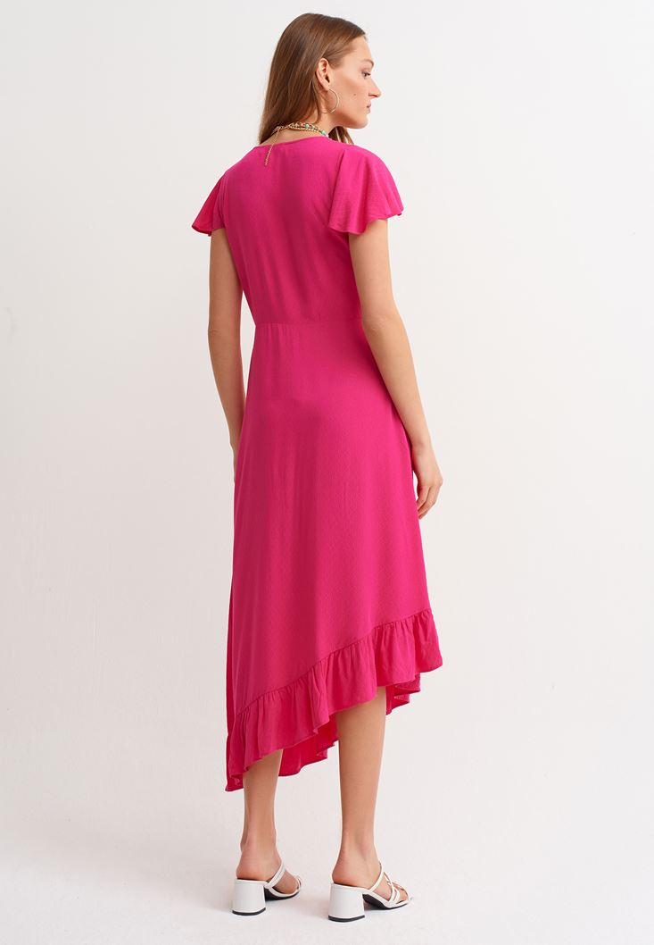 Pembe Fırfır Detaylı Midi Boy Elbise