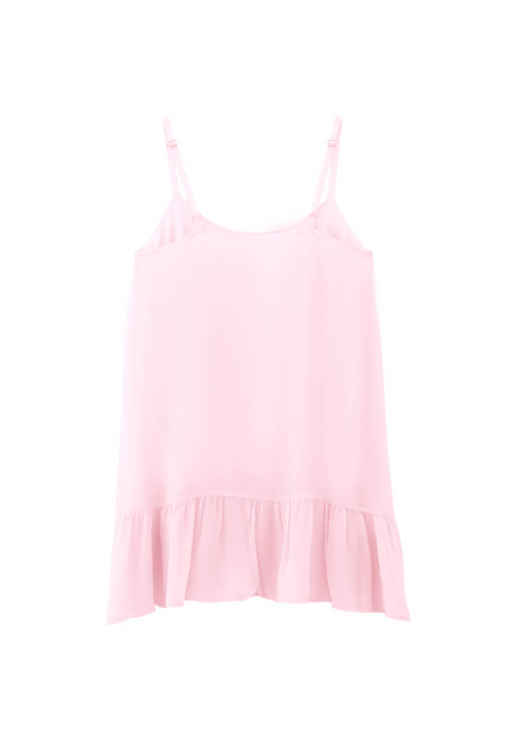 %100 viskon içerikli doku, bot yaka, içi askılı astarlı, fırfır detaylı, mini kesim, üst kısmı pelerin tasarım, üst ve alt beden bölümleri fırfır detaylı.