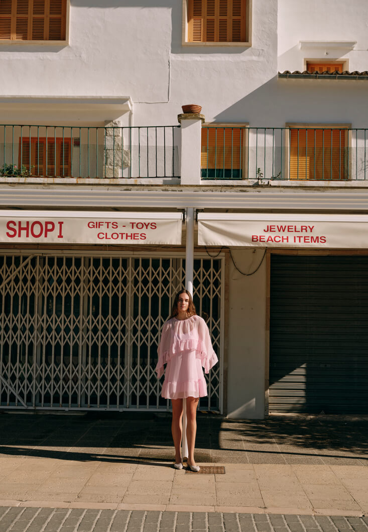 Dinamik ve feminen: fırfır detaylı mini elbise! Enerjik formu ve hareketli detaylarıyla öne çıkan bu mini elbise, yaz kombinlerinize eğlenceli ve feminen bir dokunuş katıyor. Üst ve alt bedende bulunan fırfır tasarımı; elbiseye hacim ve dinamizm kazandırırken, uçuş uçuş yapısı siluetinizi zarifçe vurgular. Rahat kumaşı sayesinde gün boyu konfor sunan bu parça; topuklu ayakkabılar veya bant detaylı terlikler eşliğinde akşam davetlerinde öne çıkmak için ideal bir seçim.