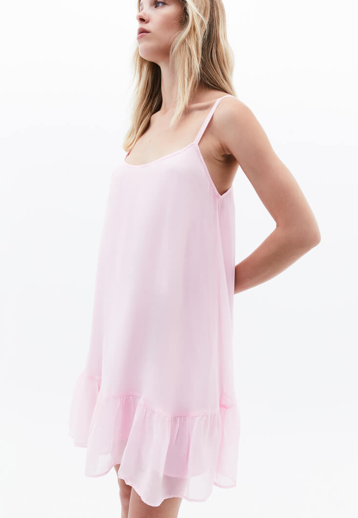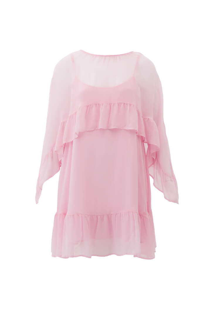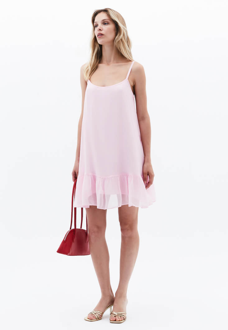 • Bayan Pembe Fırfır Detaylı Mini Elbise