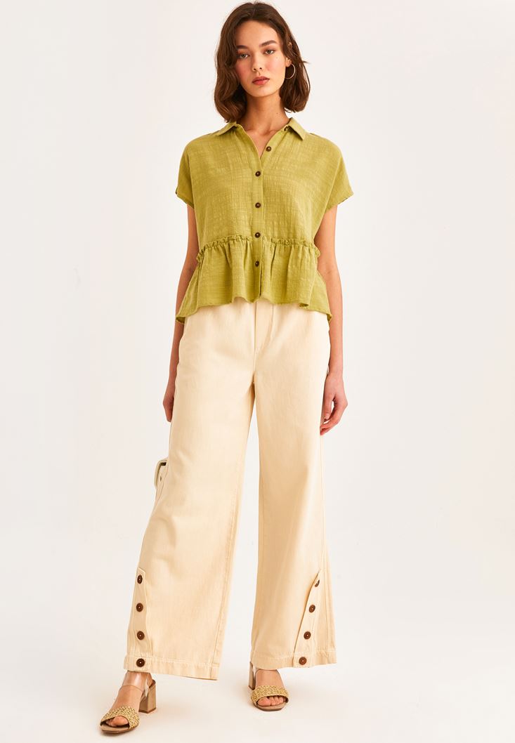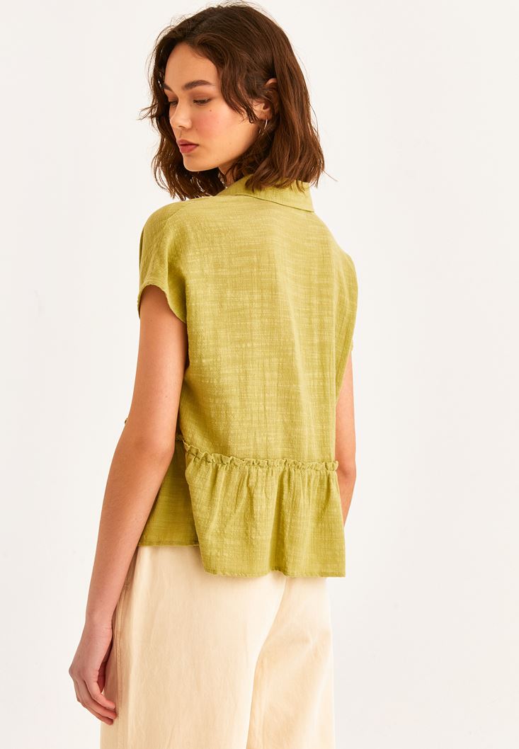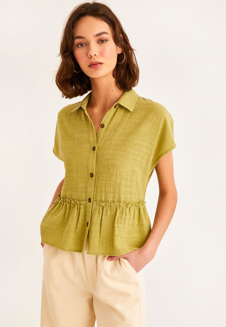 Yeşil Fırfır Detaylı Oversize Gömlek