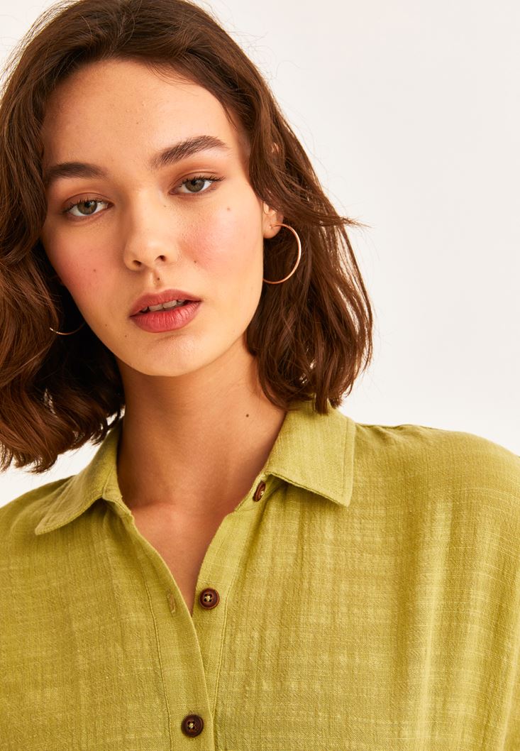 • Bayan Yeşil Fırfır Detaylı Oversize Gömlek