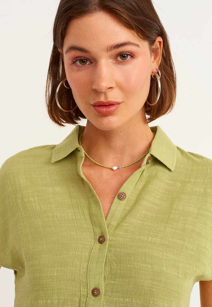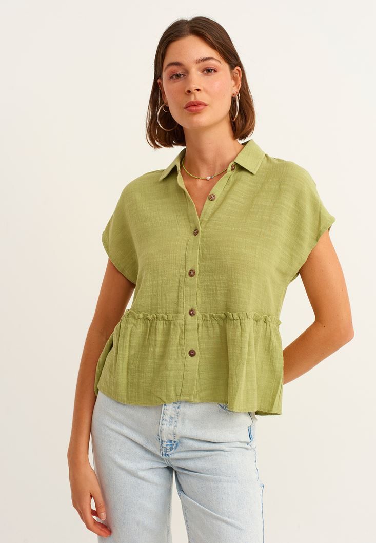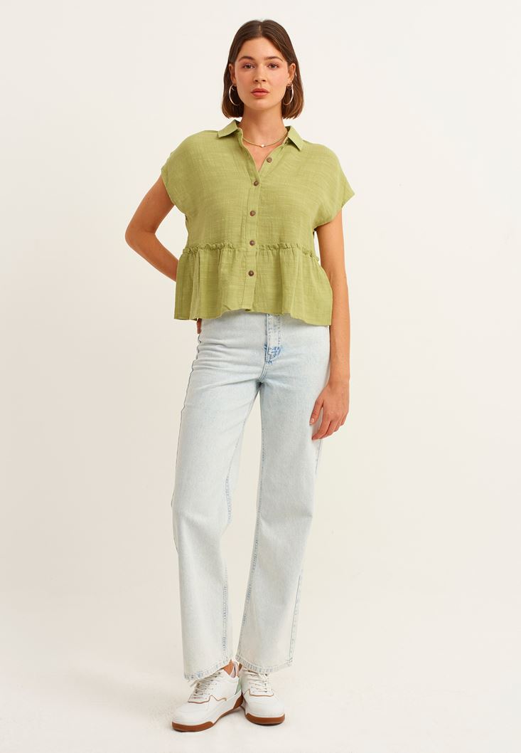 Yeşil Fırfır Detaylı Oversize Gömlek