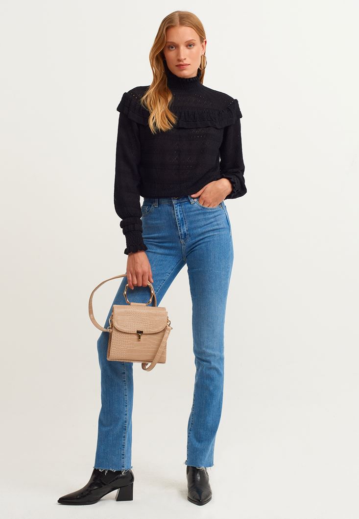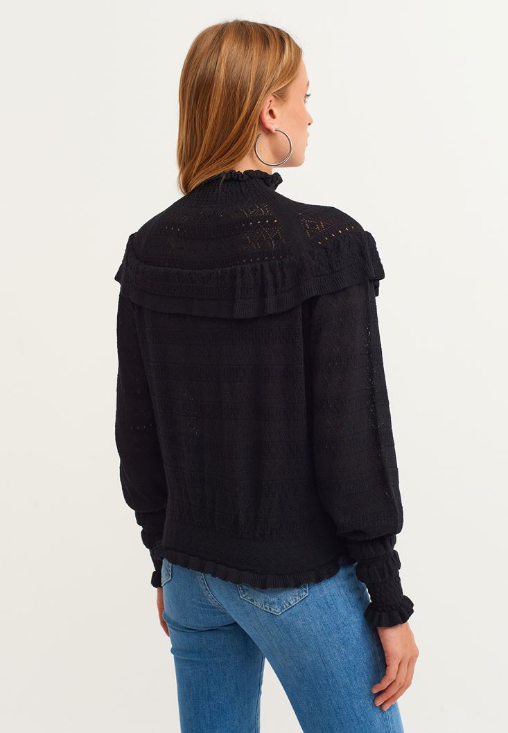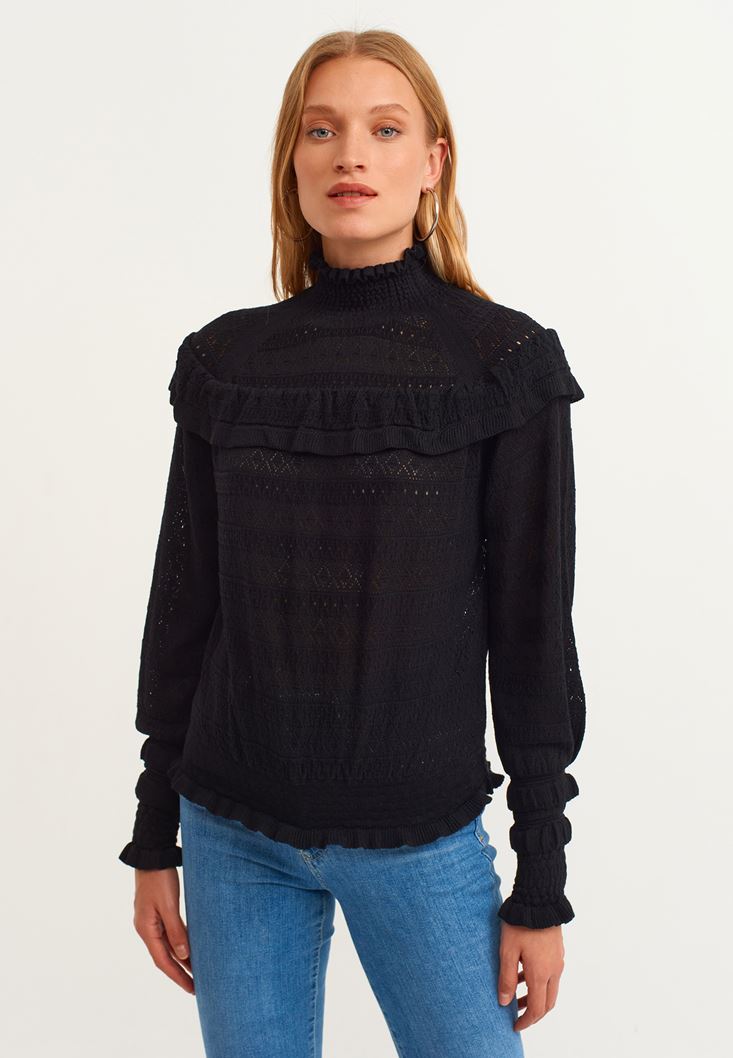 Siyah Fırfır Detaylı Romantik Kazak