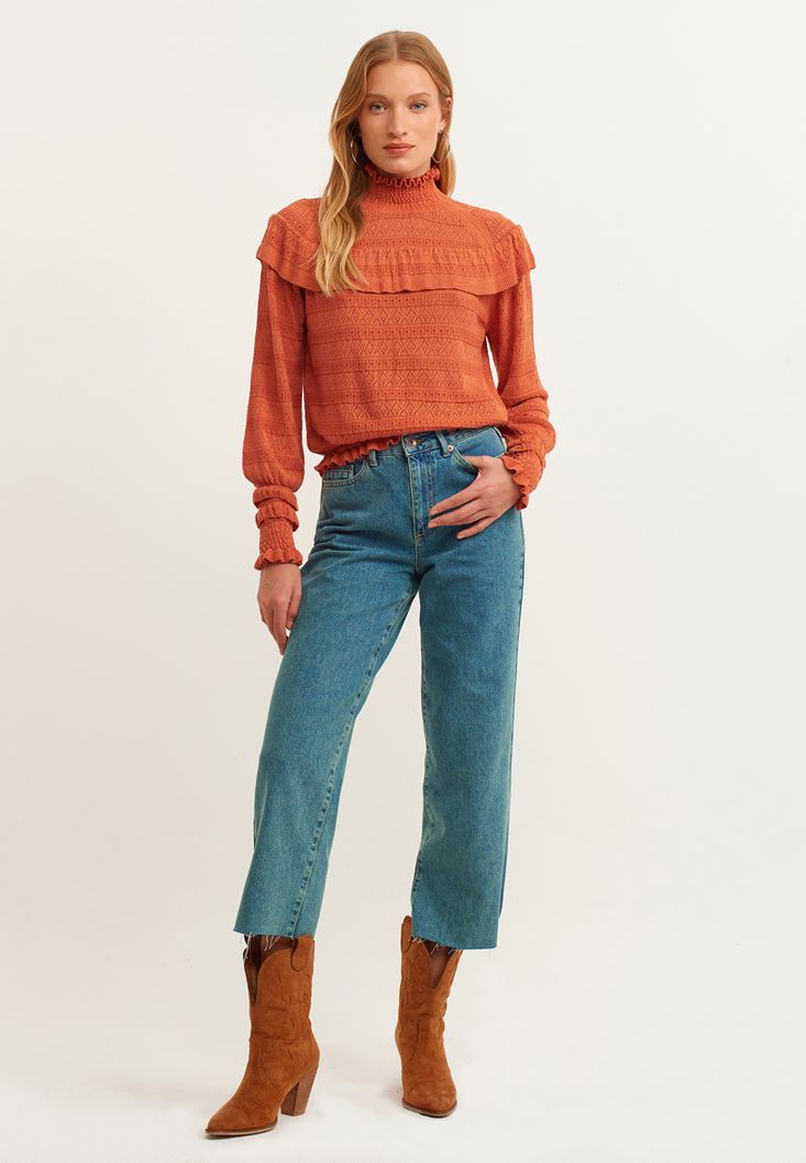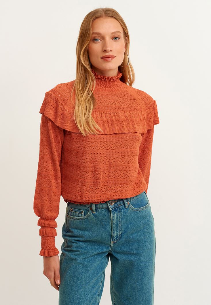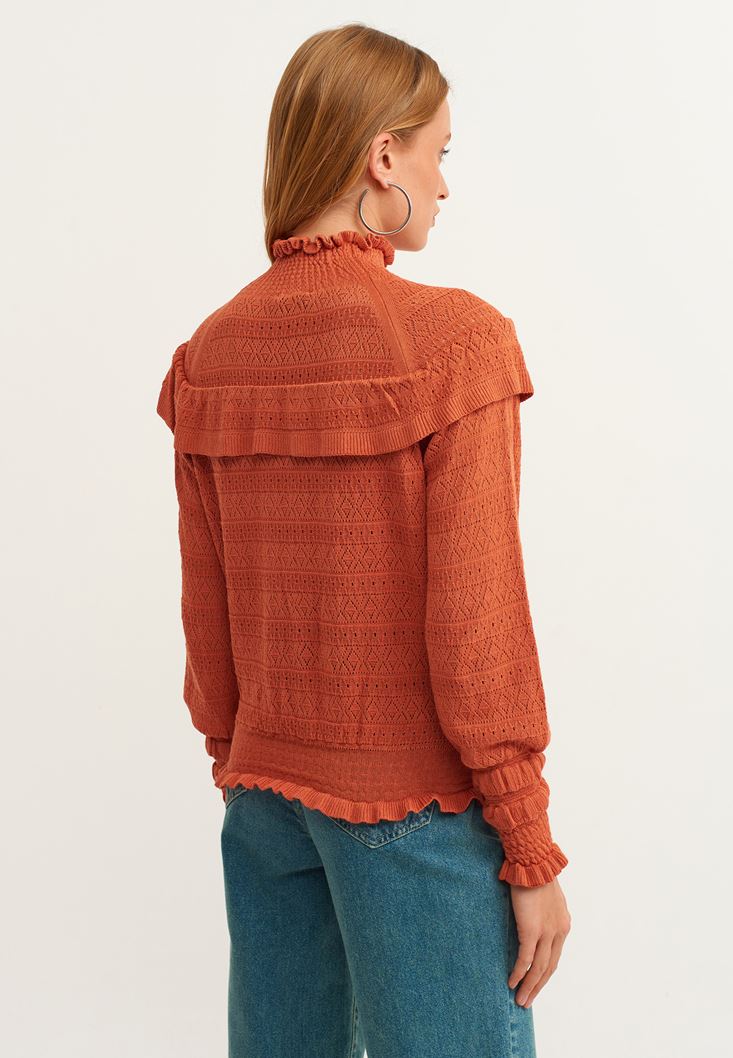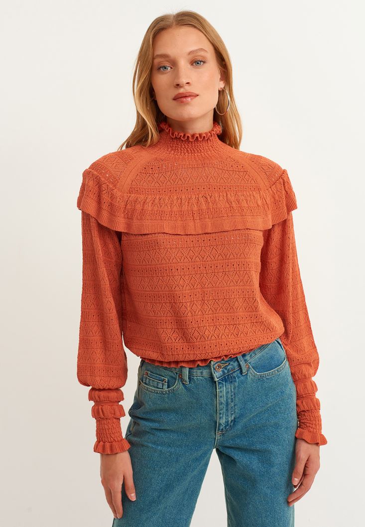 • Bayan Turuncu Fırfır Detaylı Romantik Kazak