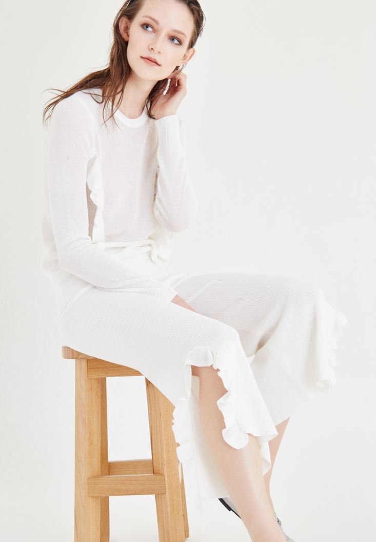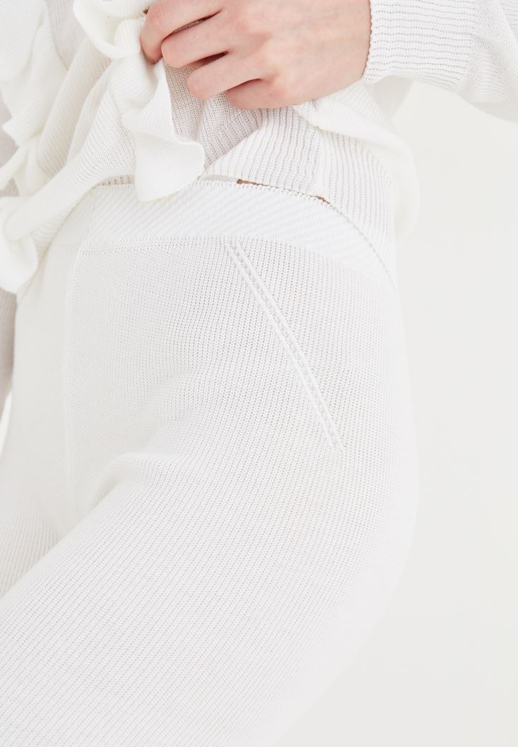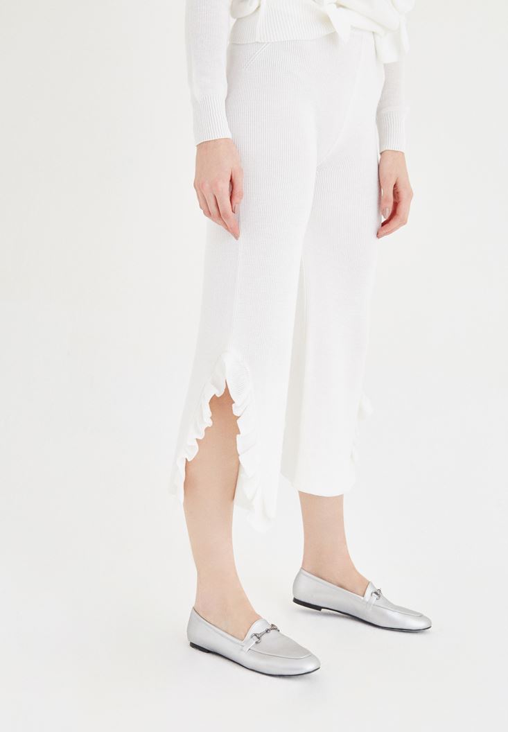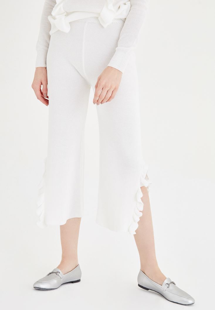 • Bayan Krem Fırfır Detaylı Triko Pantolon
