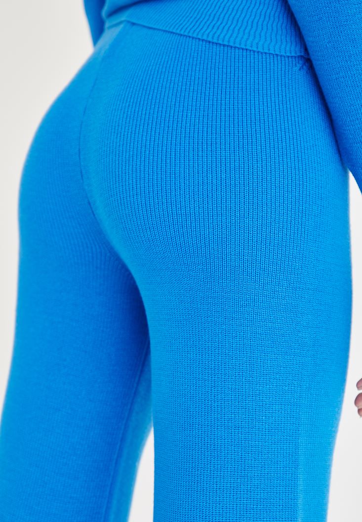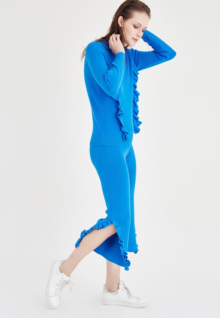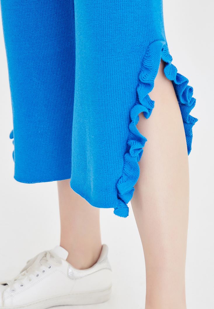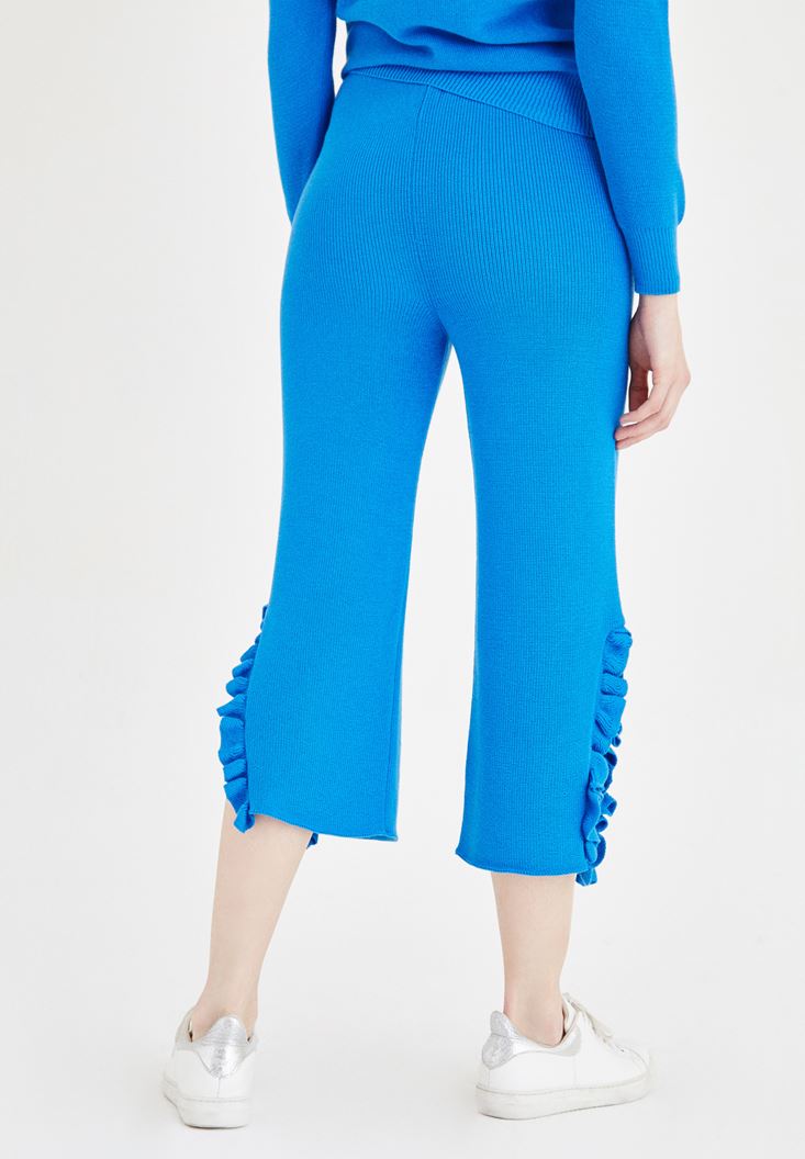 • Bayan Mavi Fırfır Detaylı Triko Pantolon