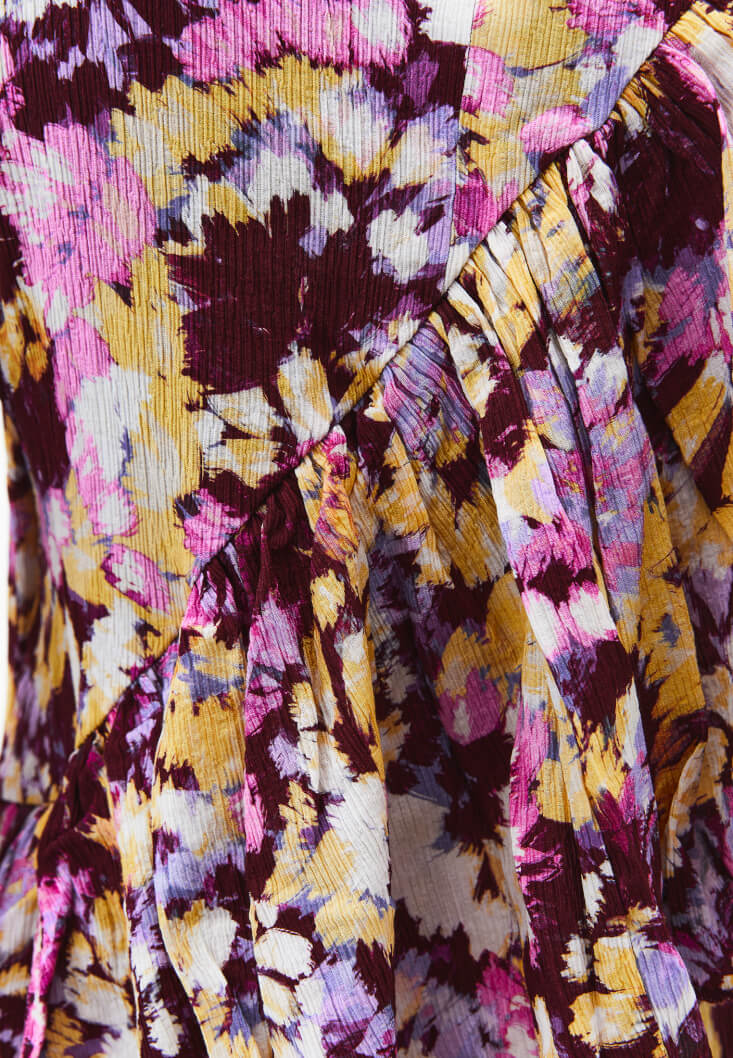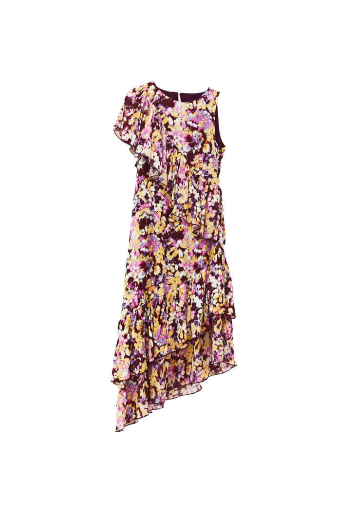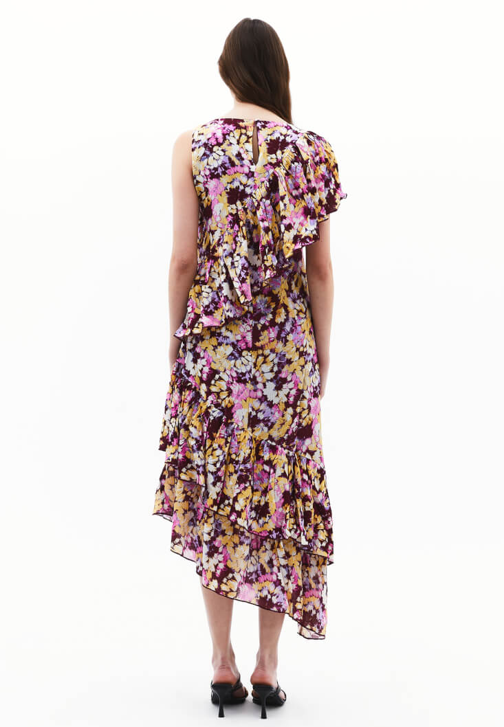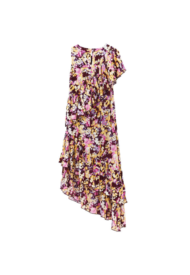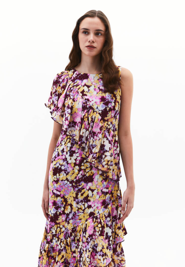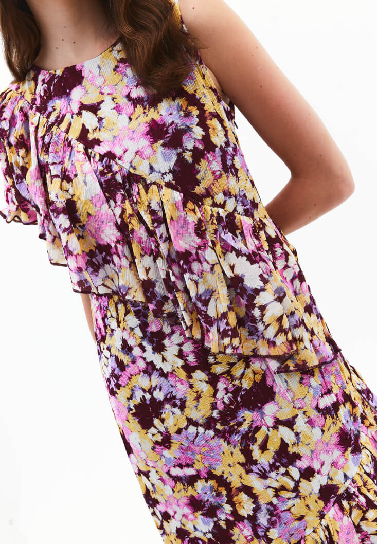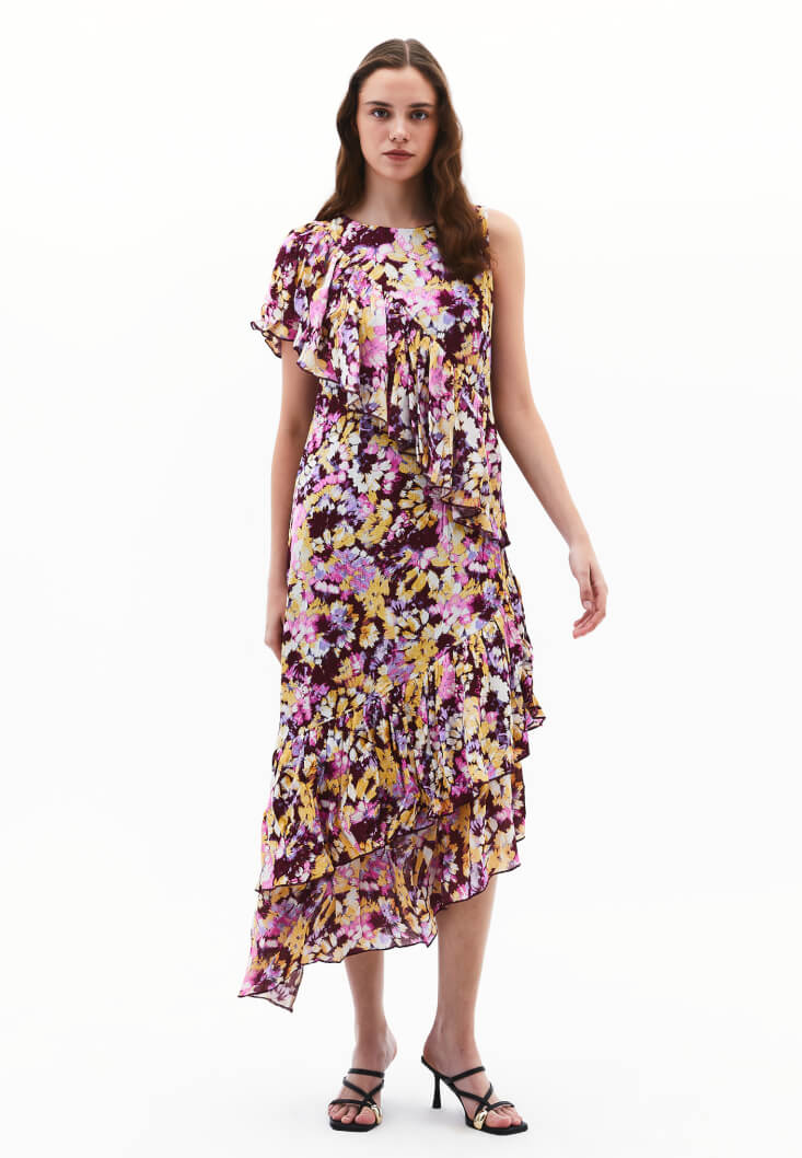 Çok Renkli Fırfır Detaylı Uzun Elbise