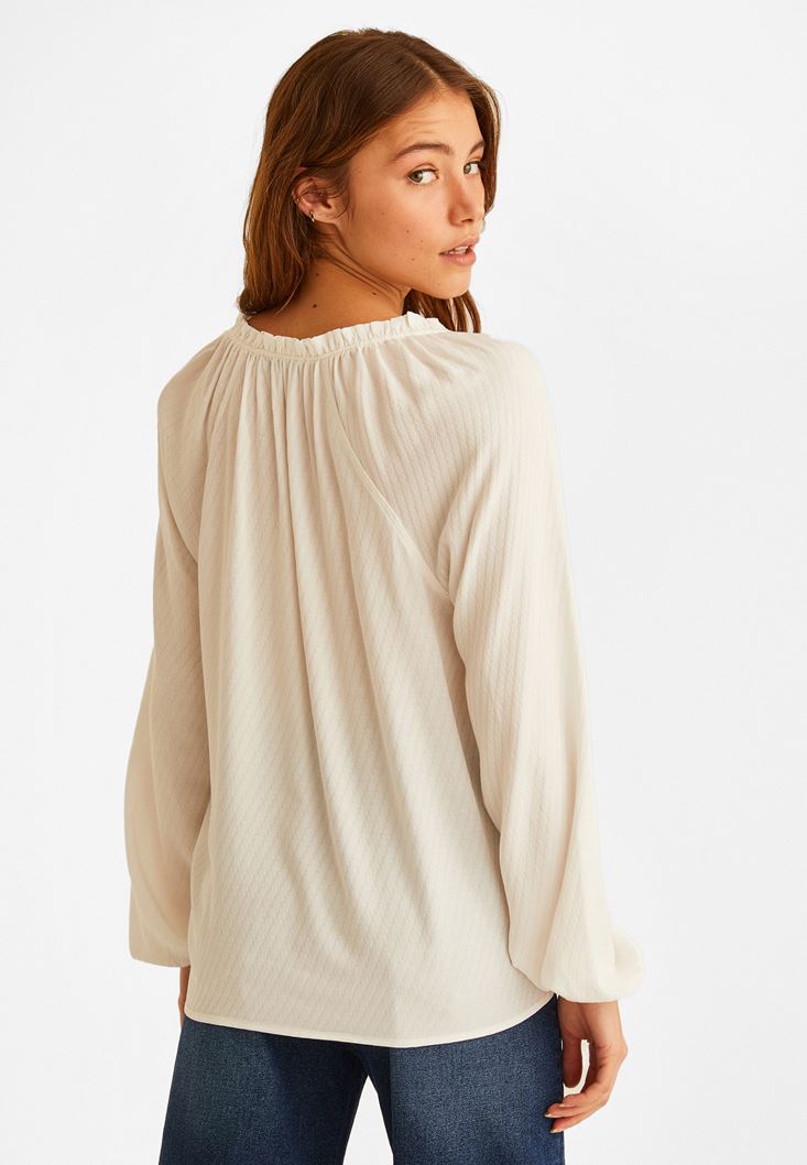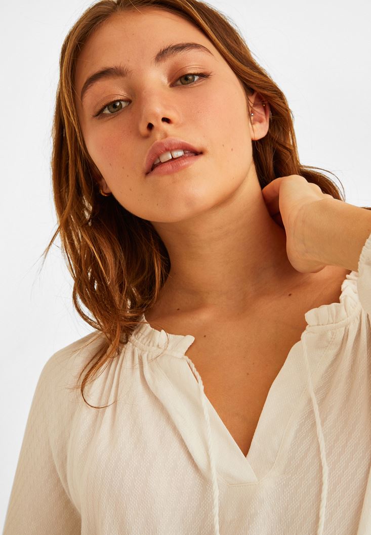 • Bayan Beyaz Fırfır Detaylı V Yaka Bluz