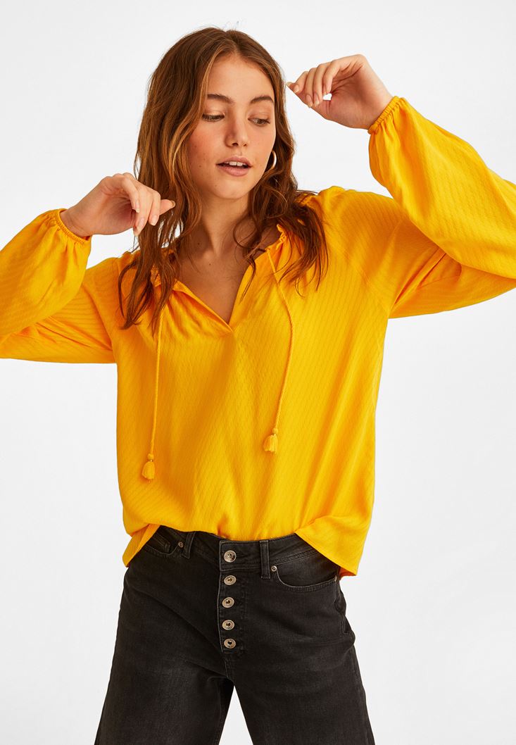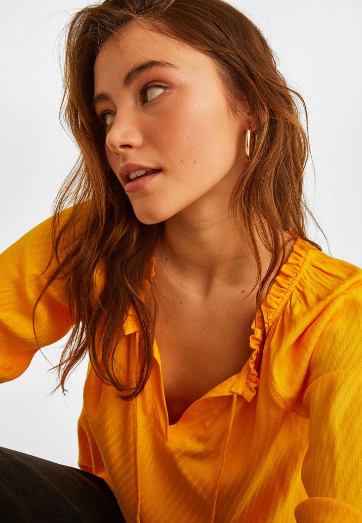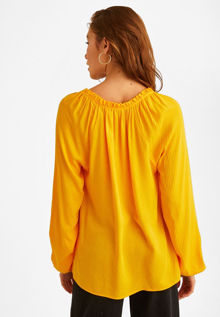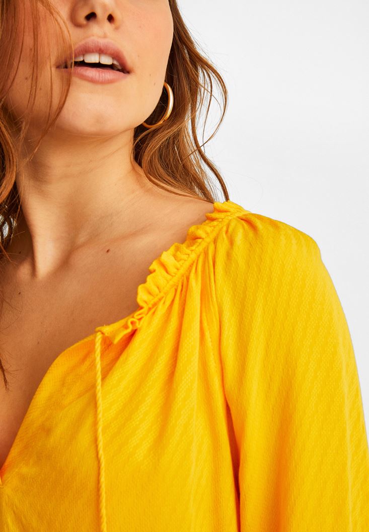 • Bayan Sarı Fırfır Detaylı V Yaka Bluz