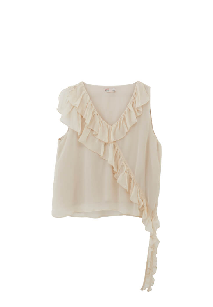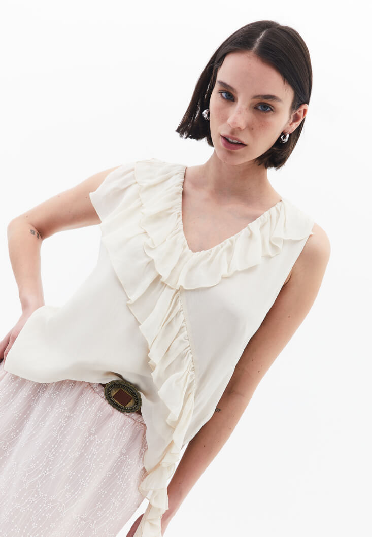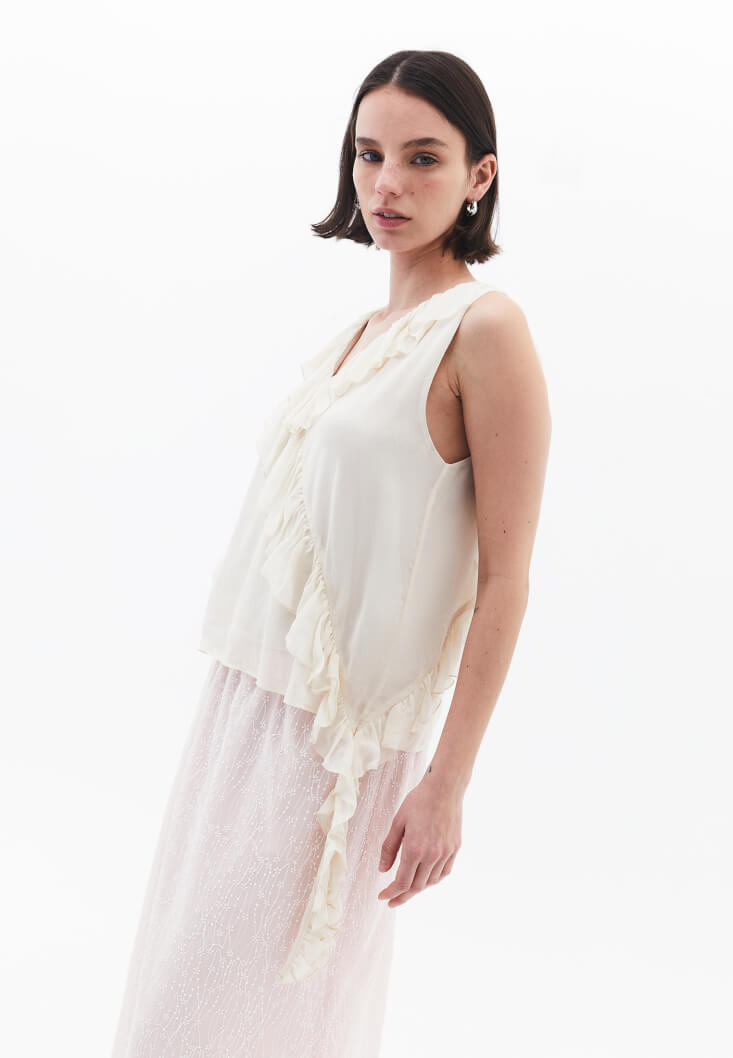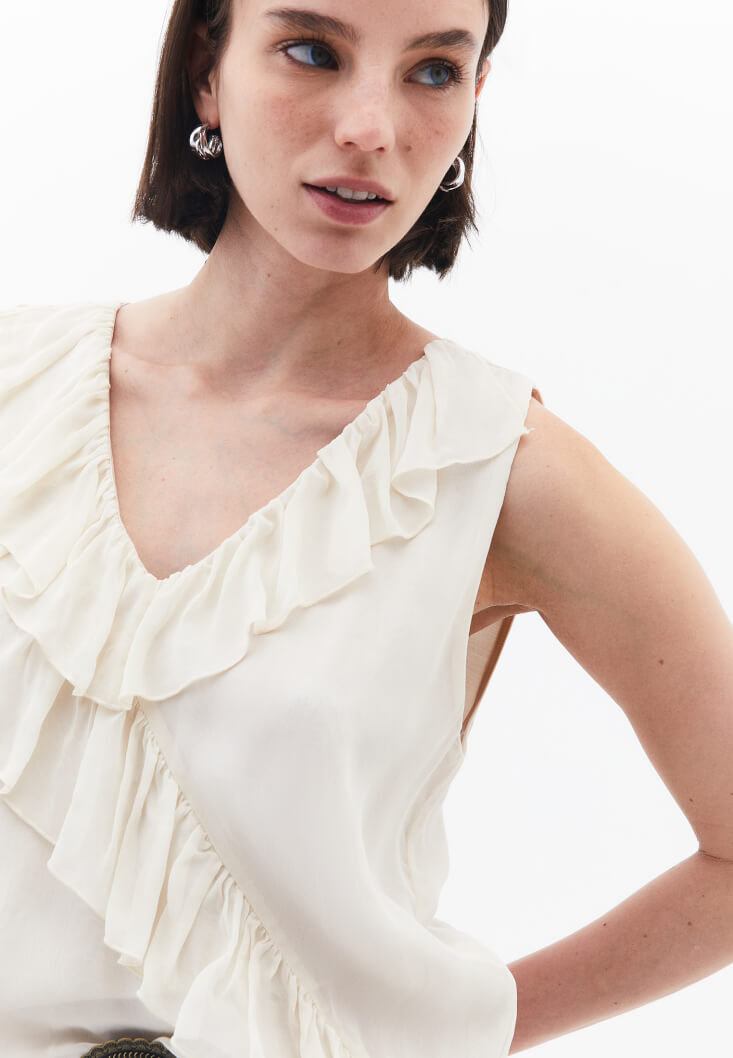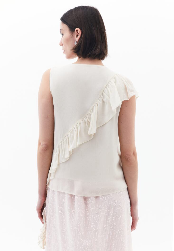 • Bayan Krem Fırfırlı Asimetrik Bluz