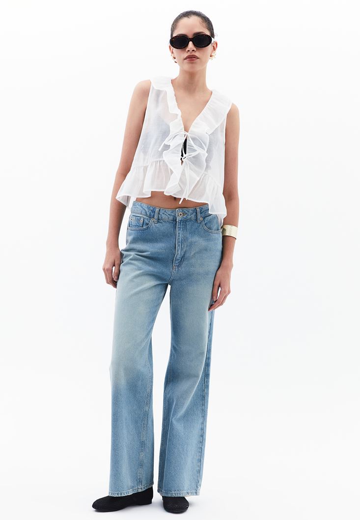 TENCEL™ karışımlı hafif dokusuyla öne çıkan bu bluz, hem doğaya duyarlı yapısı hem de feminen tasarımıyla stilinize zarif bir dokunuş katıyor. Omuz ve yaka çevresindeki fırfır detayları, hareketli ve romantik bir hava yaratırken, loose fit kalıbı siluetinizi dengeli bir şekilde vurgular.