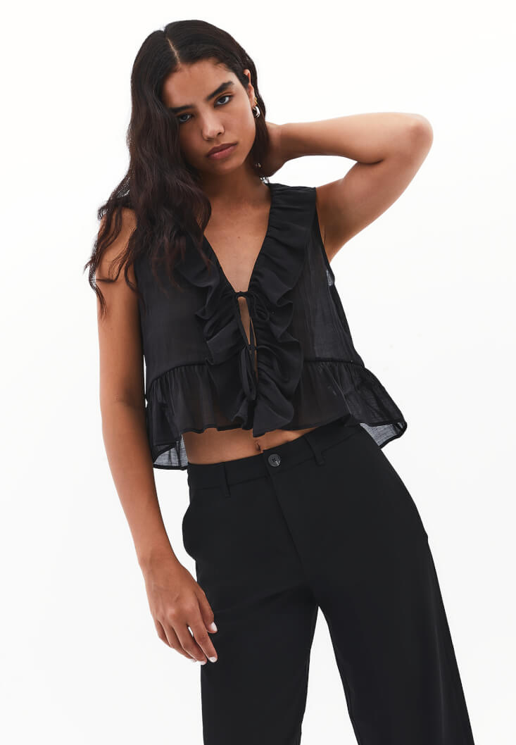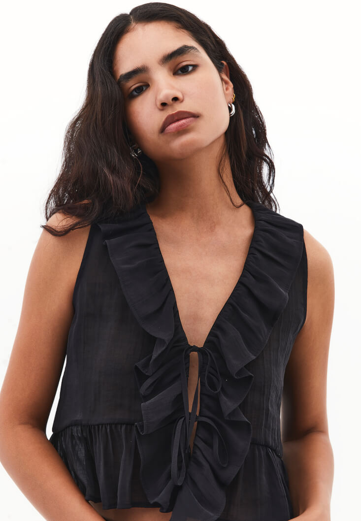 Siyah Fırfırlı Bluz ( TENCEL™ )