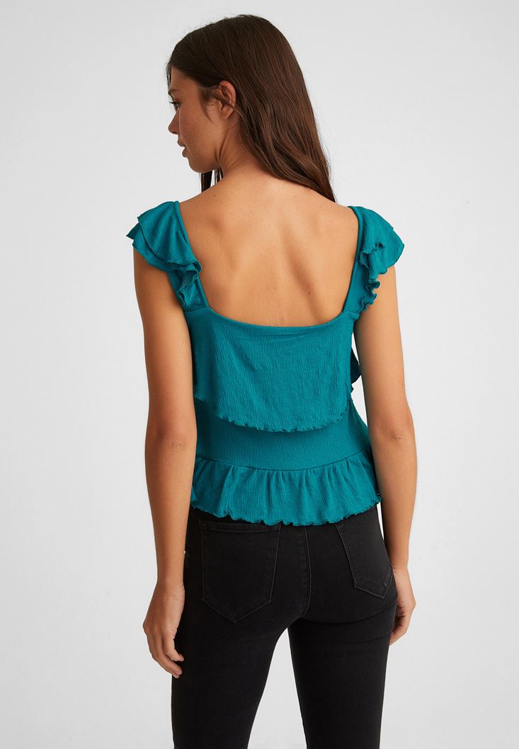 Mavi Fırfırlı Bluz