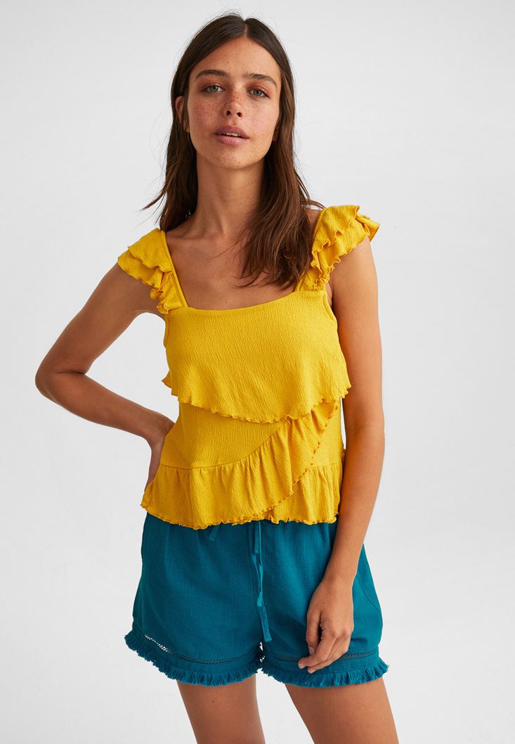Sarı Fırfırlı Bluz