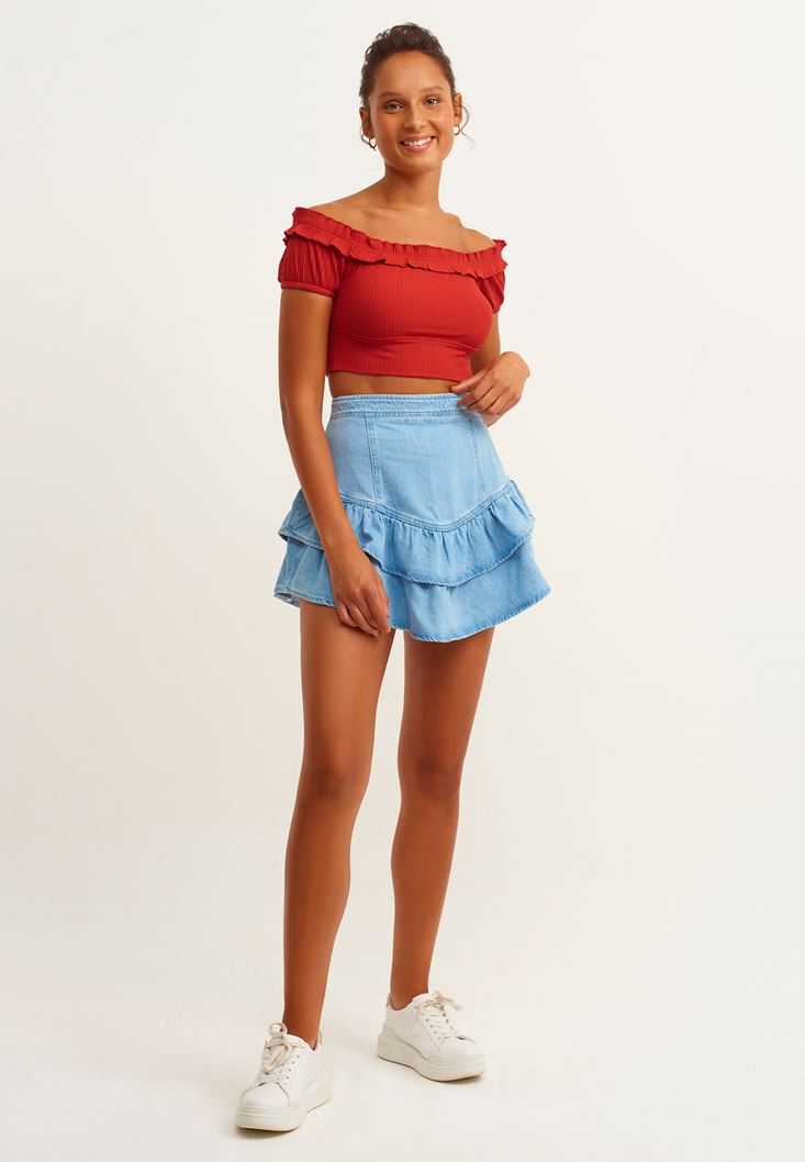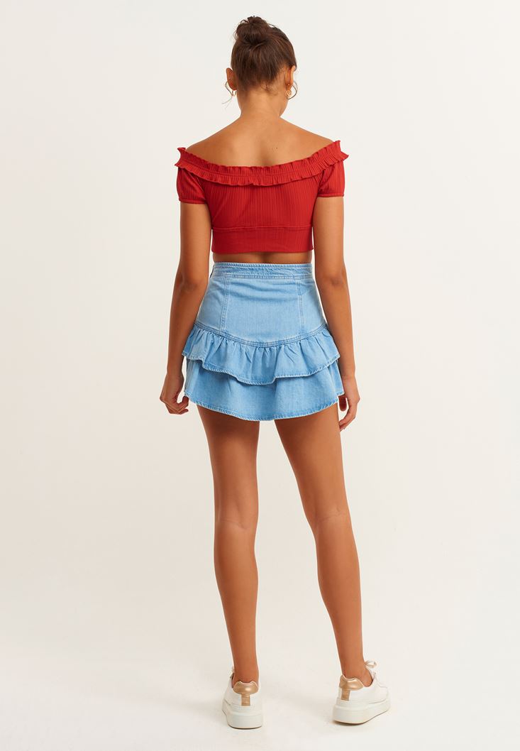 Oxxo Fırfırlı Denim Etek 212585174