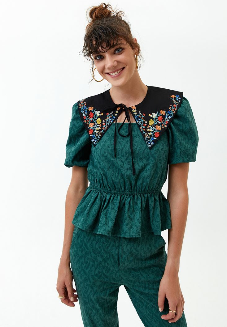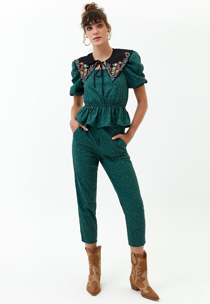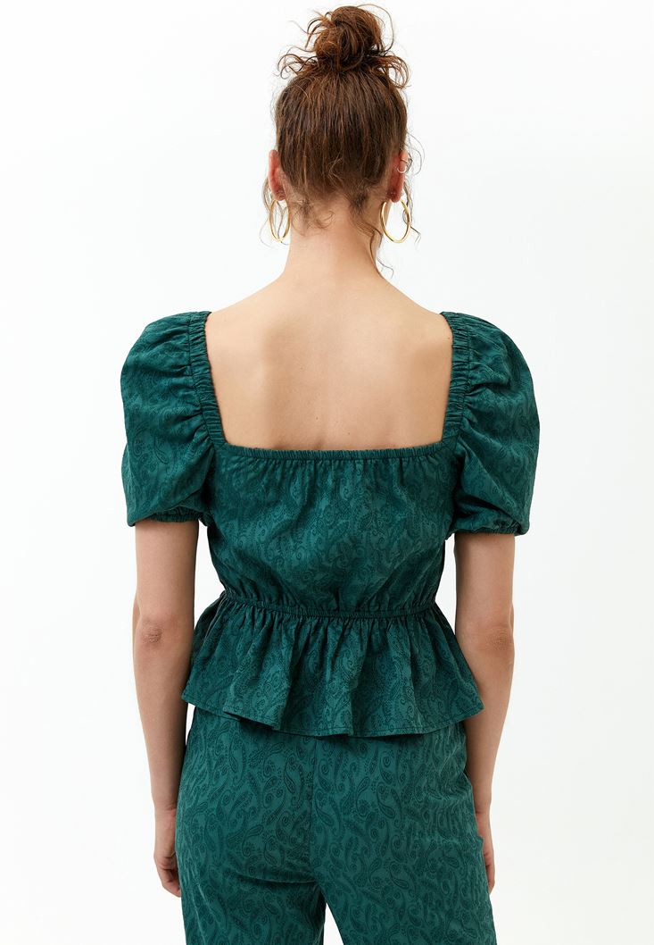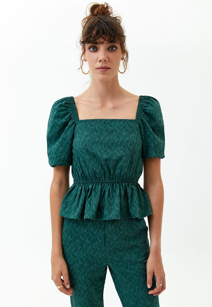 • Bayan Yeşil Fırfırlı Kare Yaka Bluz