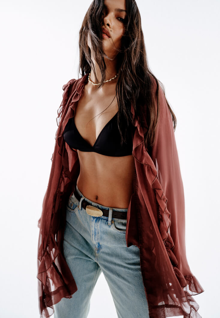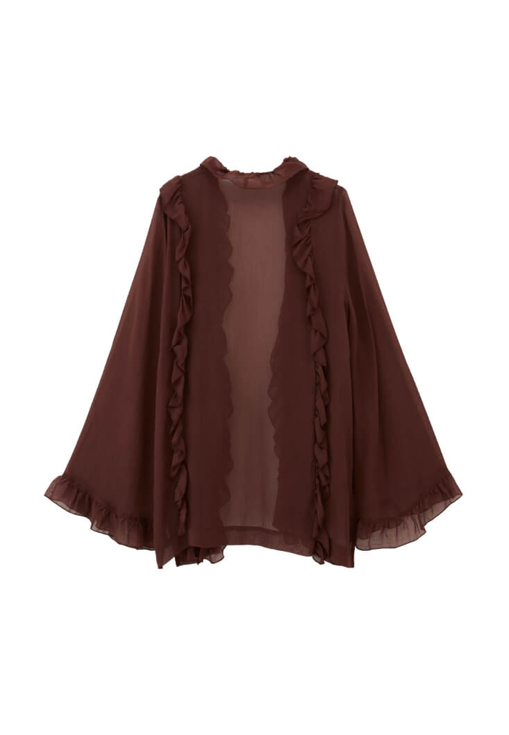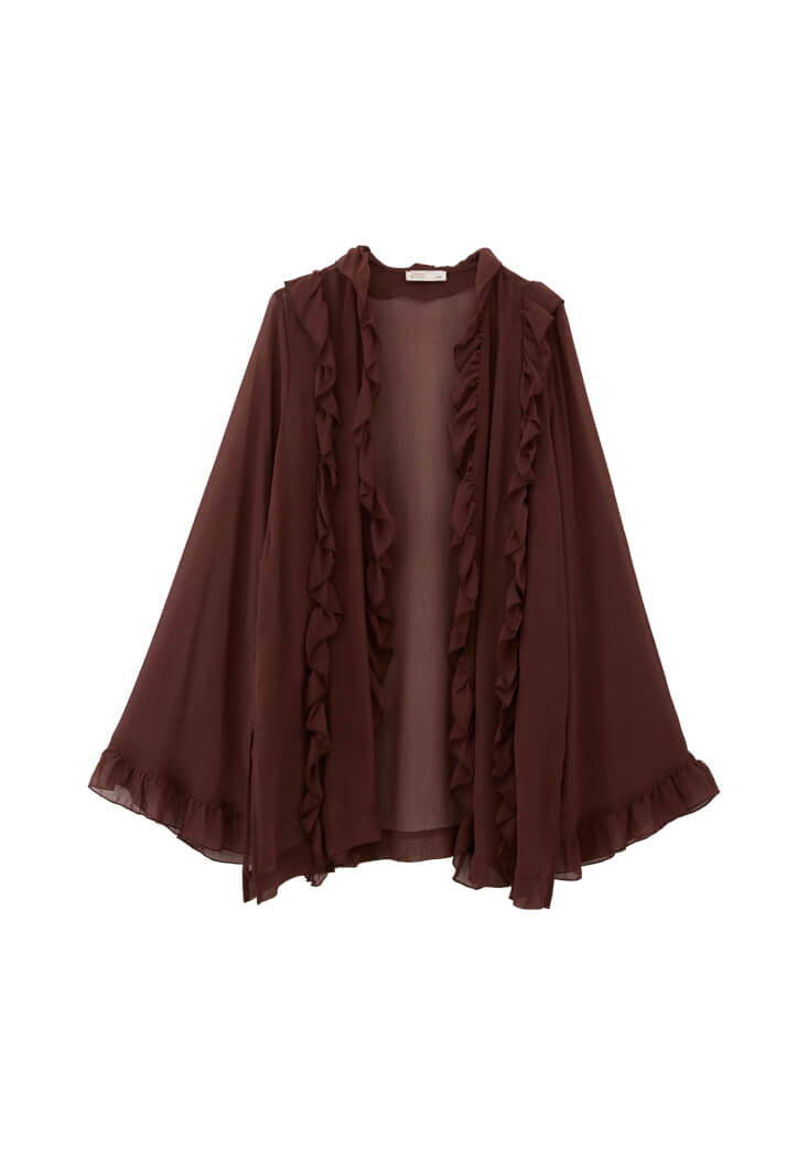 Kahverengi Fırfırlı Kimono