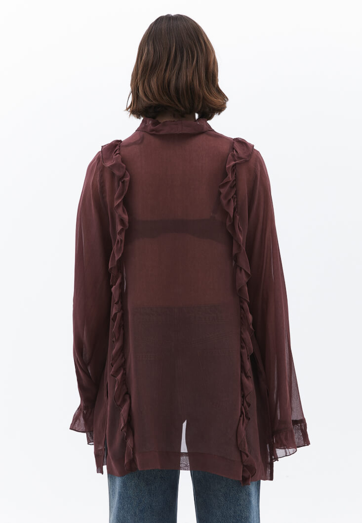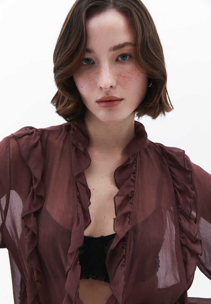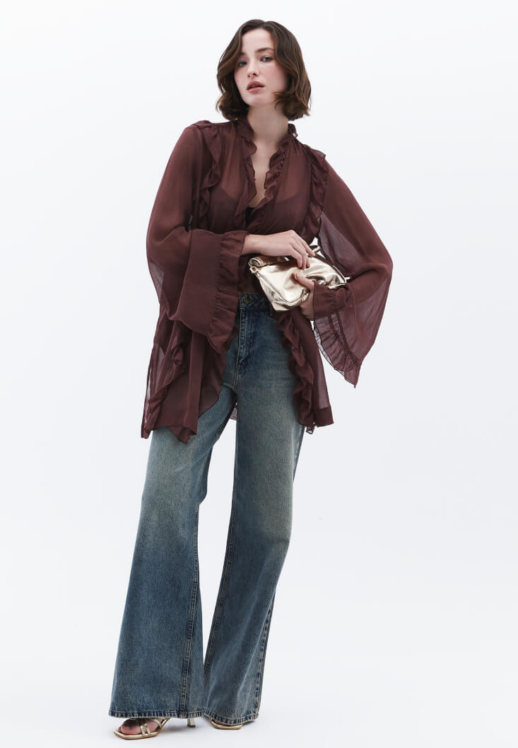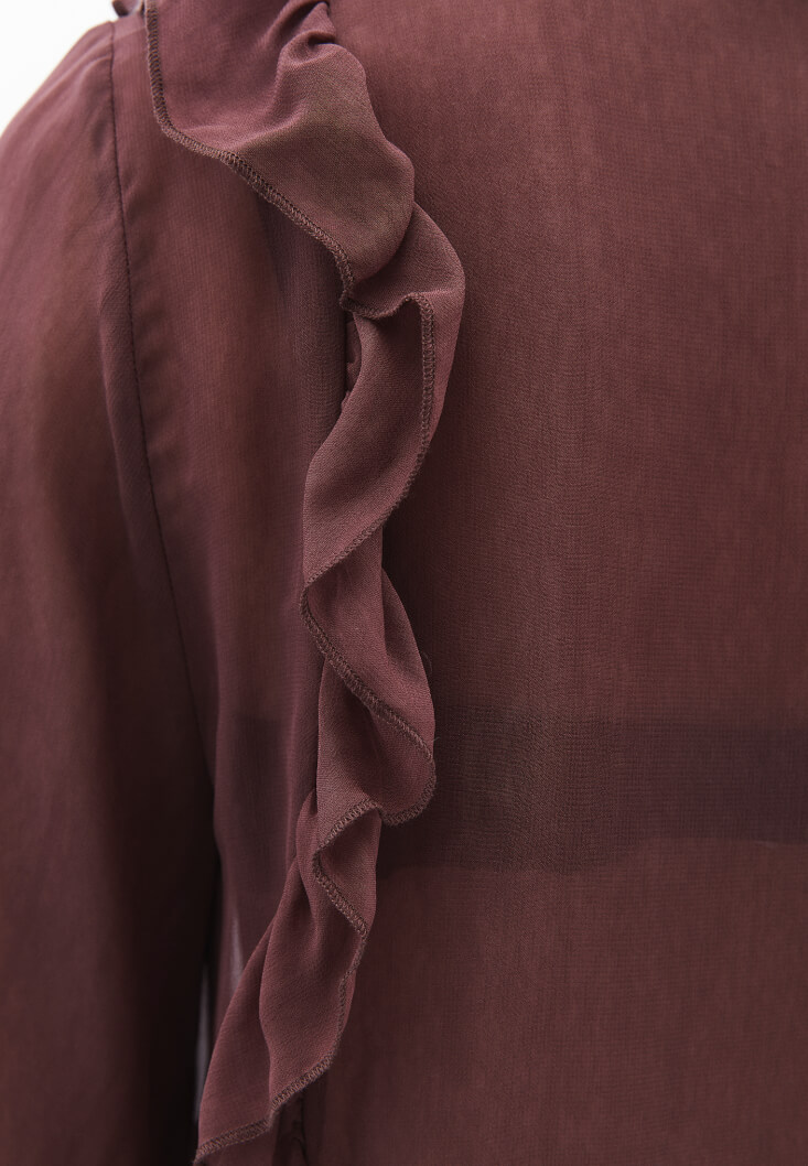 • Bayan Kahverengi Fırfırlı Kimono