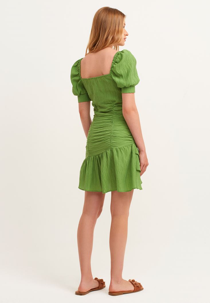 • Bayan Yeşil Fırfırlı Mini Elbise ( TENCEL™ )