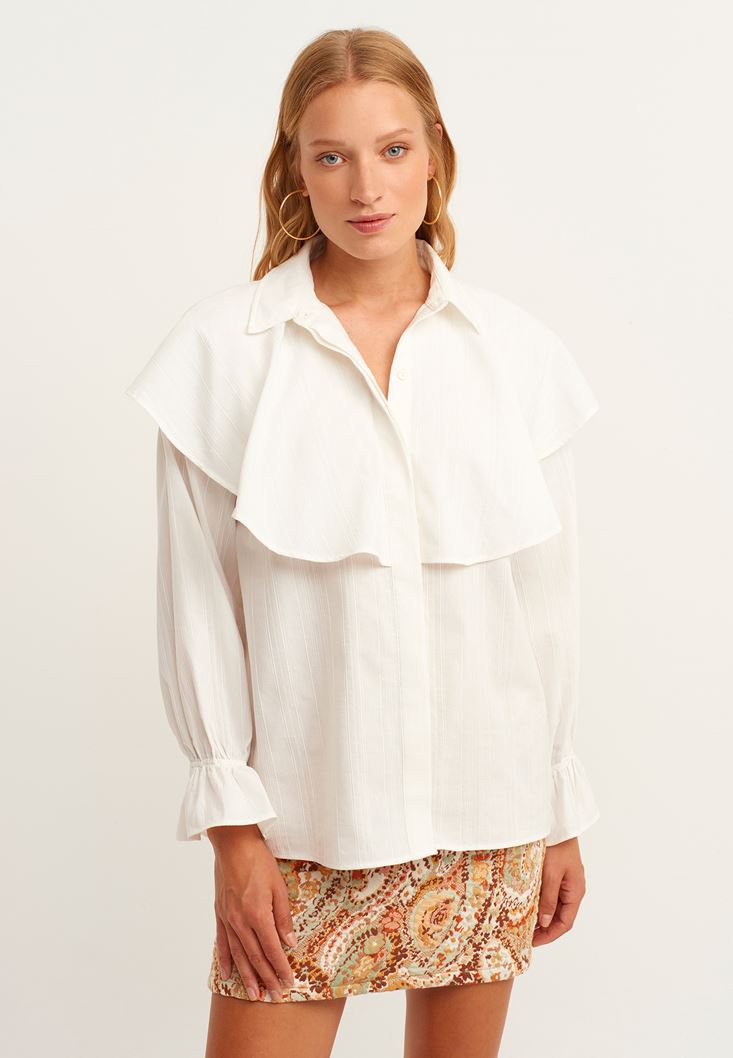 • Bayan Krem Fırfırlı Oversize Gömlek