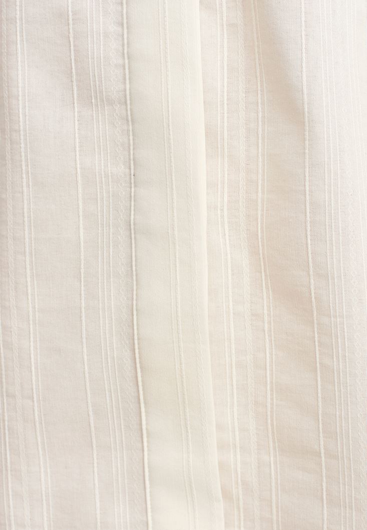 Pamuk karışımlı özel doku, ön kısmı omuz boyunca fırfır detaylı, uzun kollu, kol ucu büzgülü, standart boy, bedenden uzak oversize fit.