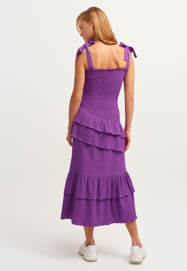 Mor Fırfırlı ve Gipeli Maxi Elbise