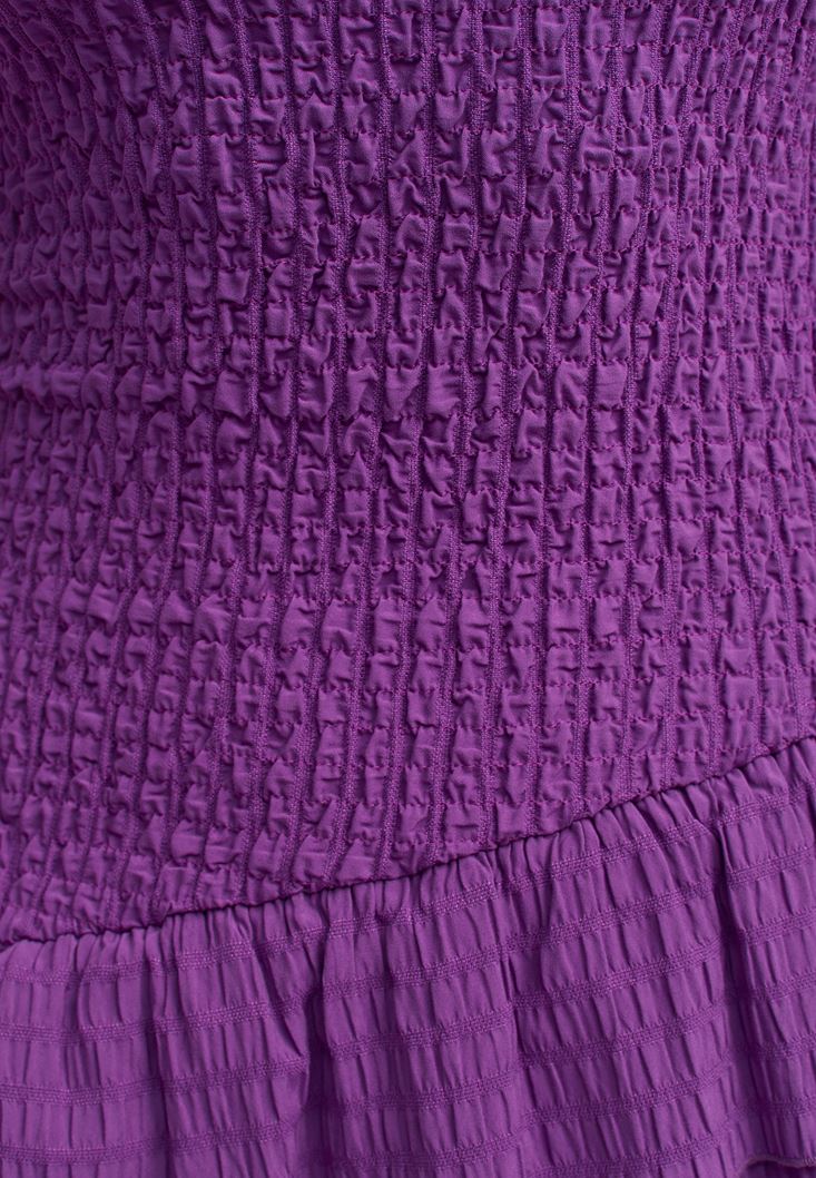 • Bayan Mor Fırfırlı ve Gipeli Maxi Elbise