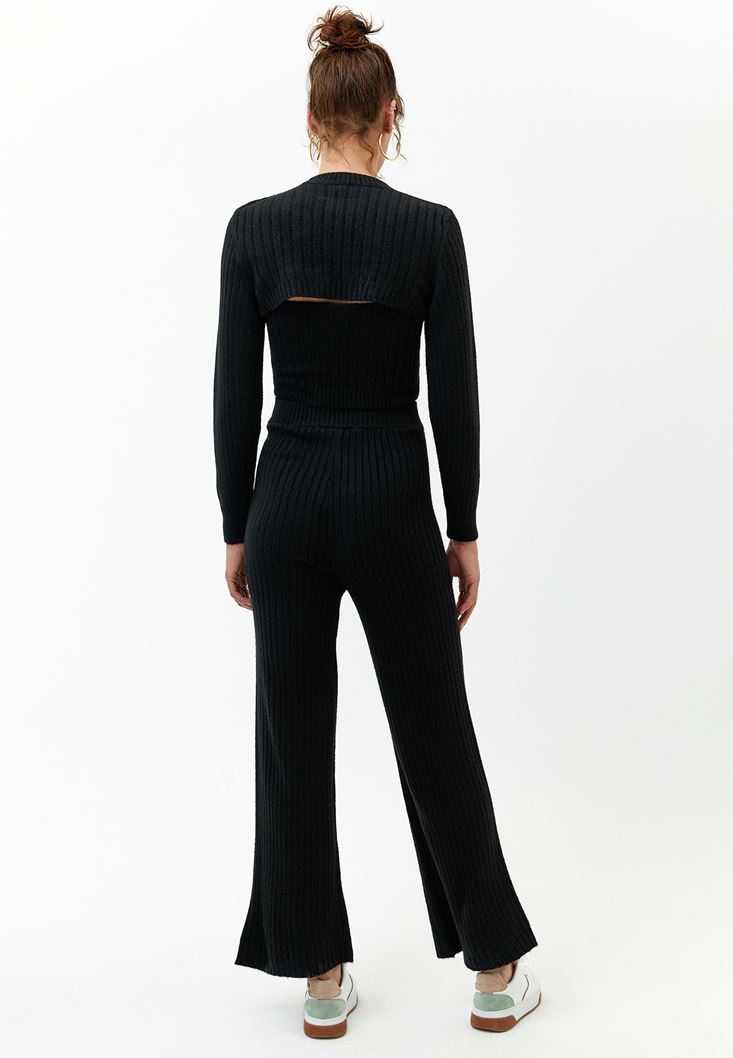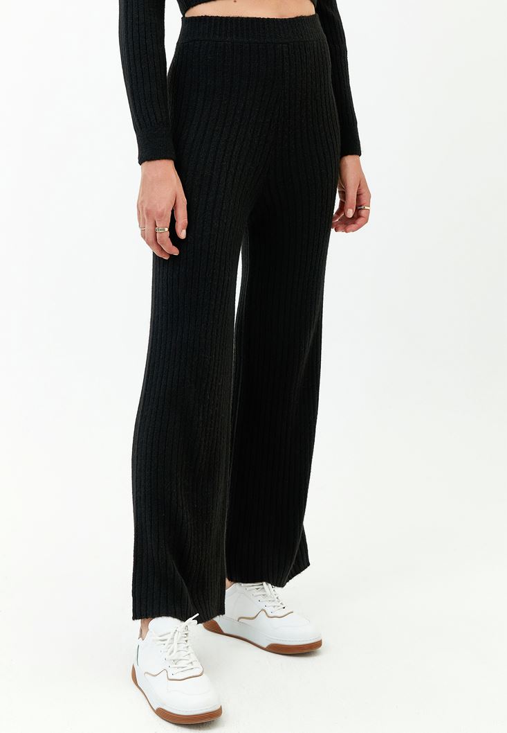 Siyah Fitilli Triko Pantolon