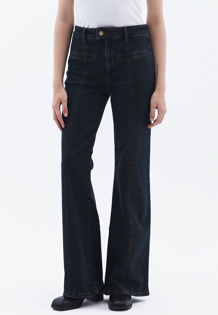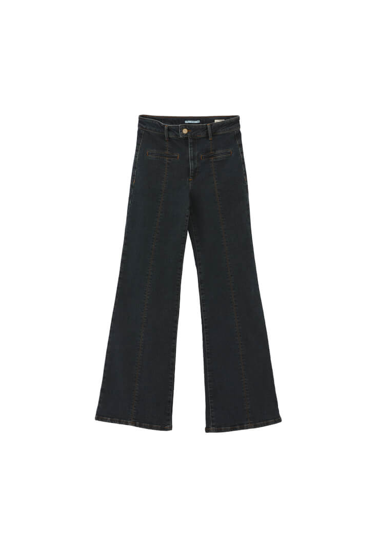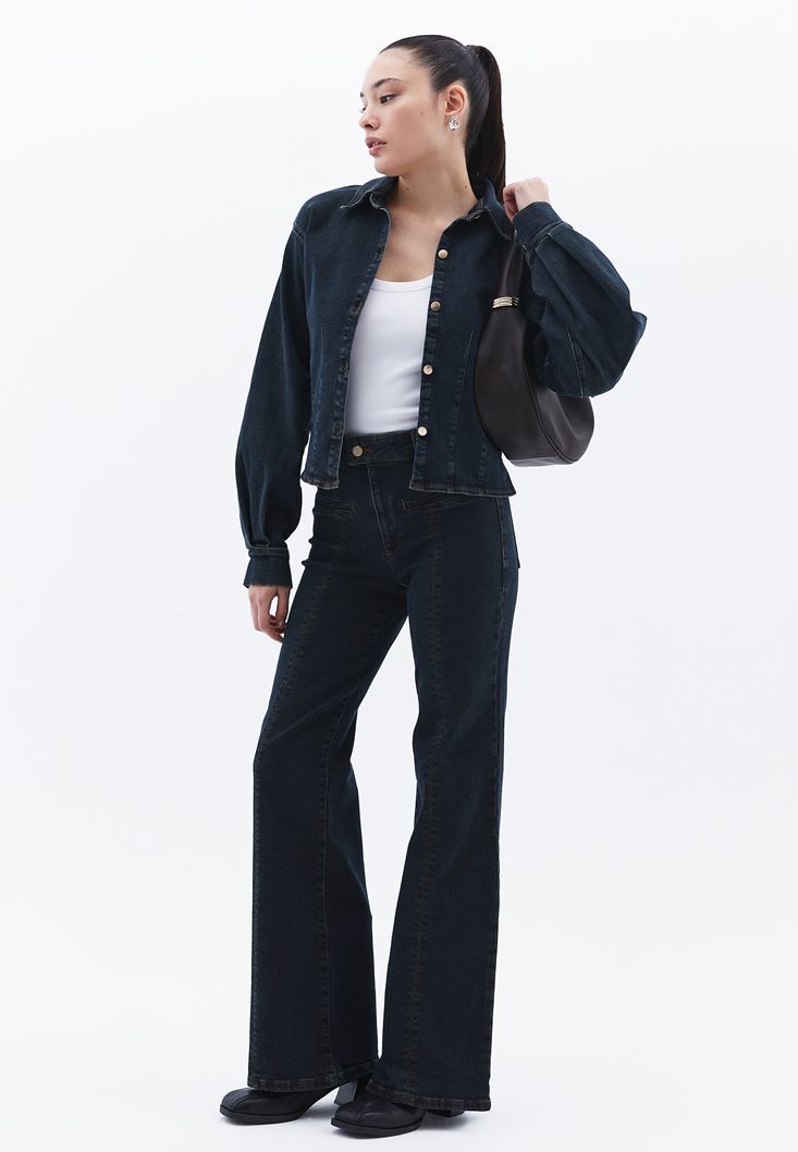 Flare Denim Pantolon ve Denim Bluz Kombini