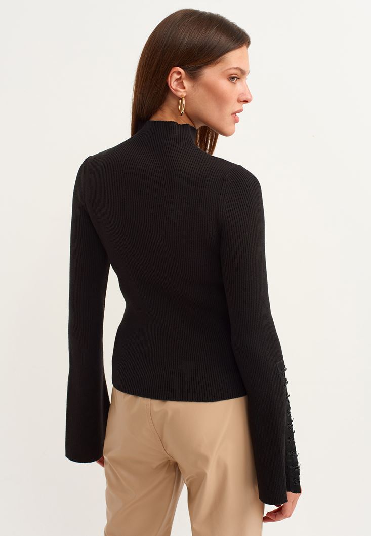 • Bayan Siyah Flare Kollu High-Neck Triko
