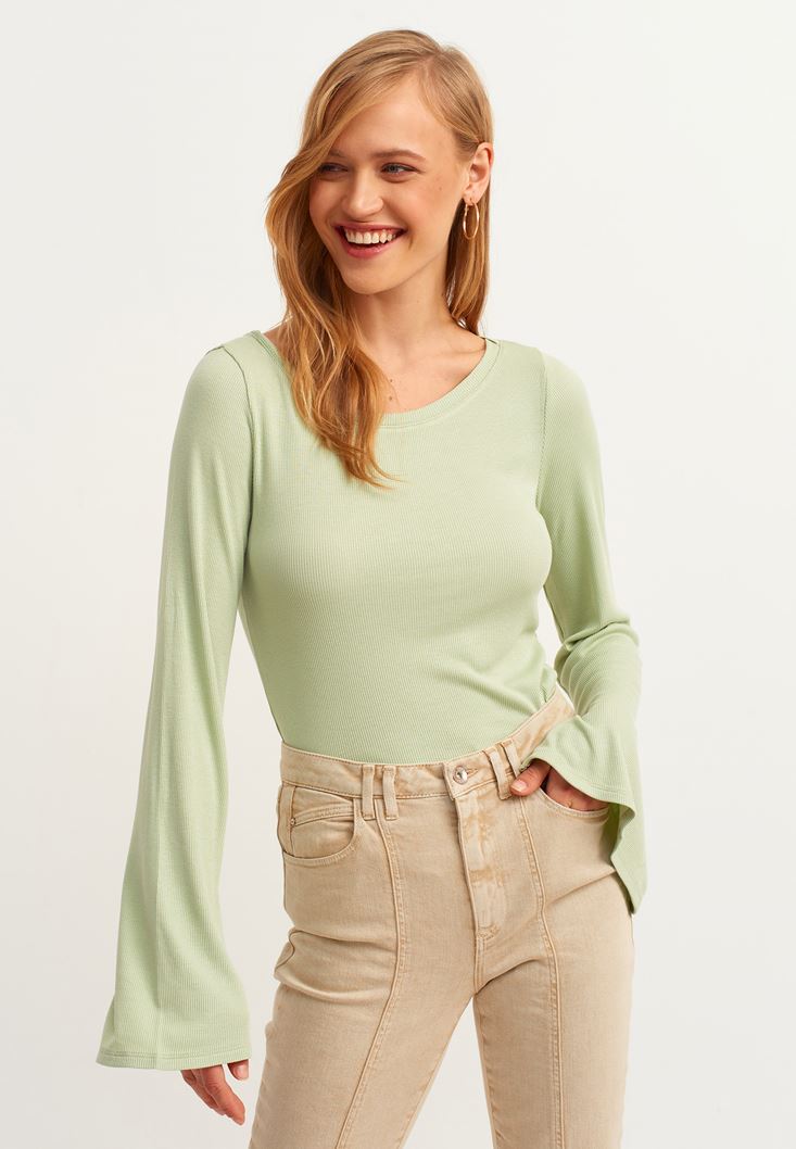 Yeşil Flare Kollu Tişört