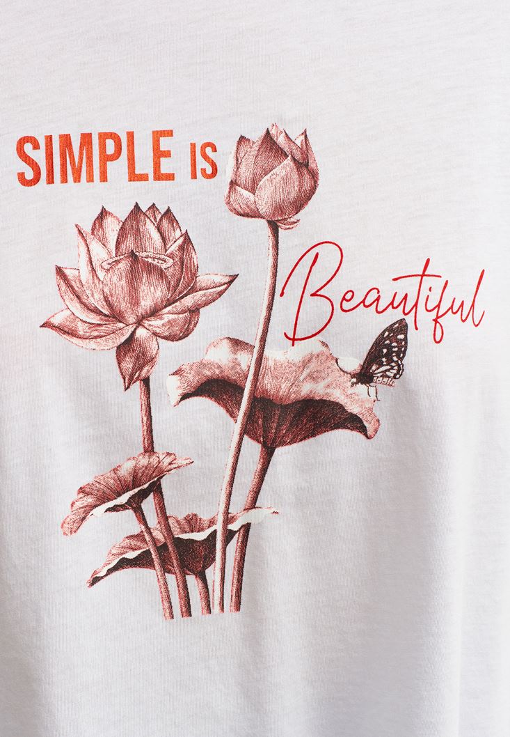 Beyaz Floral Baskılı Asimetrik Tişört ( MODAL )