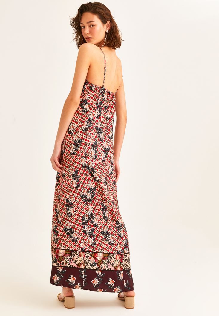 Çok Renkli Floral Desenli Askılı Elbise