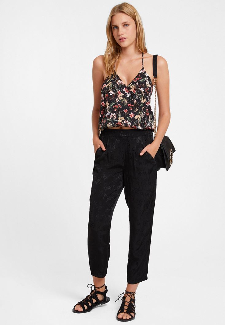 Floral Desenli V Yaka Bluz modeli kombinlerinizde her zaman yer vermekten keyif alacaginiz, her tarza rahatlikla uyum saglayan kurtarici parçalar arasinda yer aliyor. Genis V yaka kesimi ile zarif bir boyun dekoltesi sunan bluz modeli ayni zamanda sirt kisminda askilarin birlestigi kumas detayi ile de hos bir görünüm sunuyor. Kisa bel kesimi ve bel kisminda kullanilan dikisli biye detaylari ile hareket kazanan bluz modelini sort, jean, kumas pantolon gibi parçalarla birlikte kullanabilirsiniz. Zarif bir blazer ile ofis sikliginda, sik bir deri ceket ile gece disari çikarken tercih edebileceginiz çok yönlü bir OXXO tasarimi olan bluz modeli sahip oldugu viskon dokusu ile de vazgeçilmezlerinizden birisi olacak.